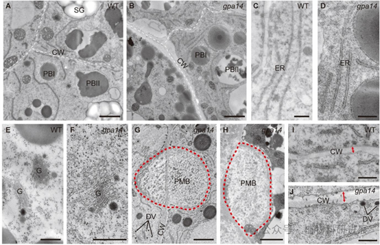 图3 gpa14突变体胚乳亚细胞结构的透射电镜观察