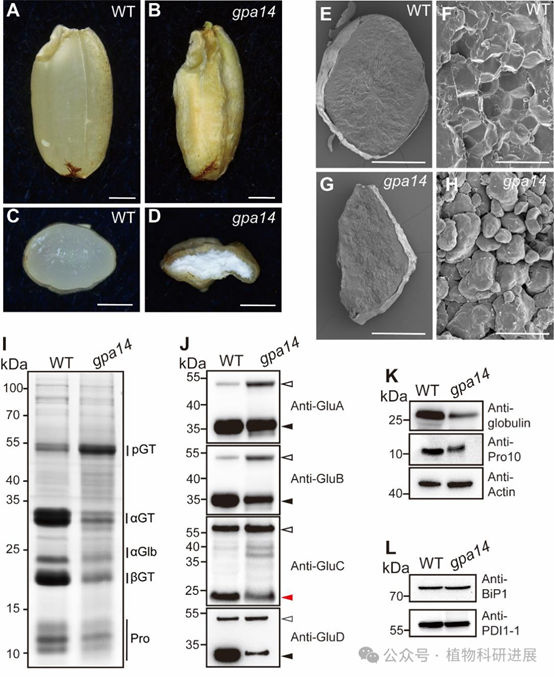 1. gpa14突变体表现出谷蛋白前体过度积累的粉质胚乳表型