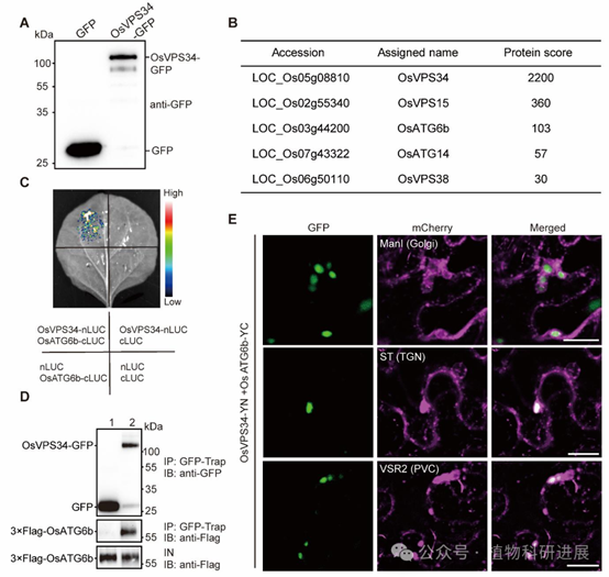 3. OsVPS34作为PI3K复合体组分催化PI3P合成,且PI3P定位于谷蛋白转运的关键细胞器
