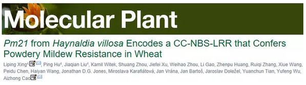 《Molecular Plant》发表了小麦遗传与种质创新团队“Pm21 from Haynaldia villosa encodes a CC-NBS-LRR that confers powdery mildew resistance in wheat”
