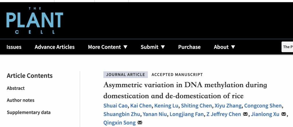 《Plant Cell》发表宋庆鑫教授团队“Asymmetric variation of DNA methylation during domestication and de-domestication of rice”