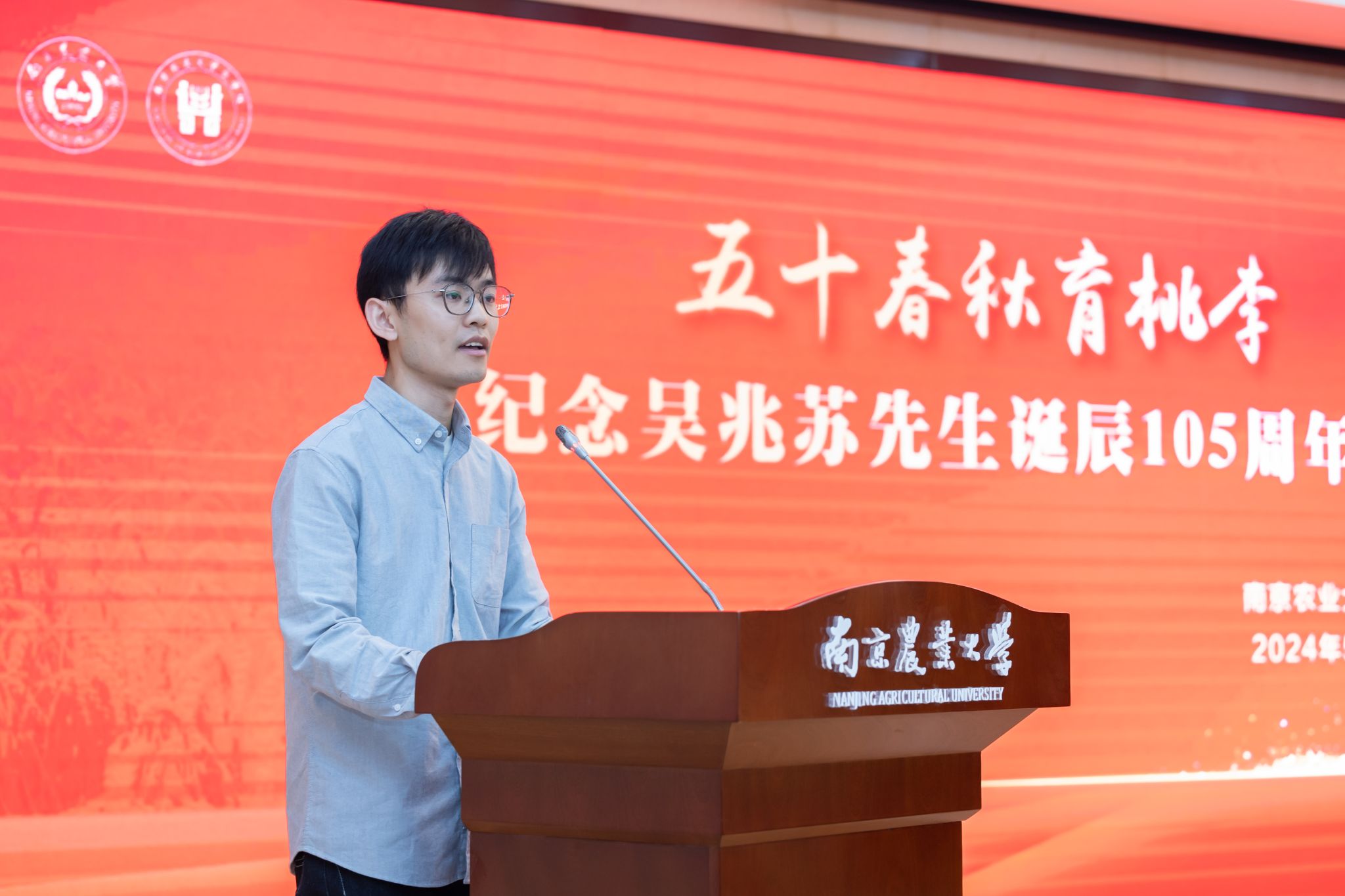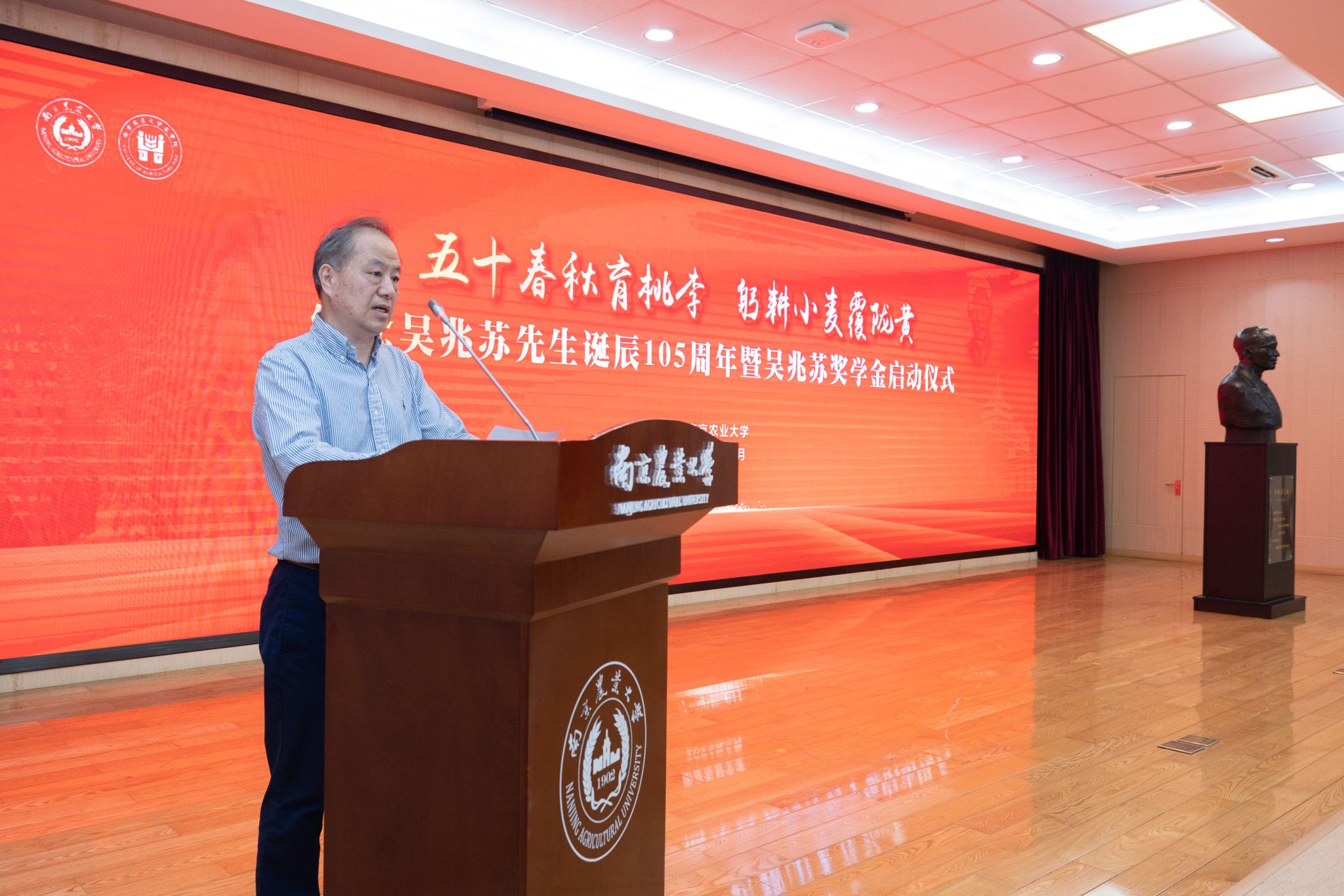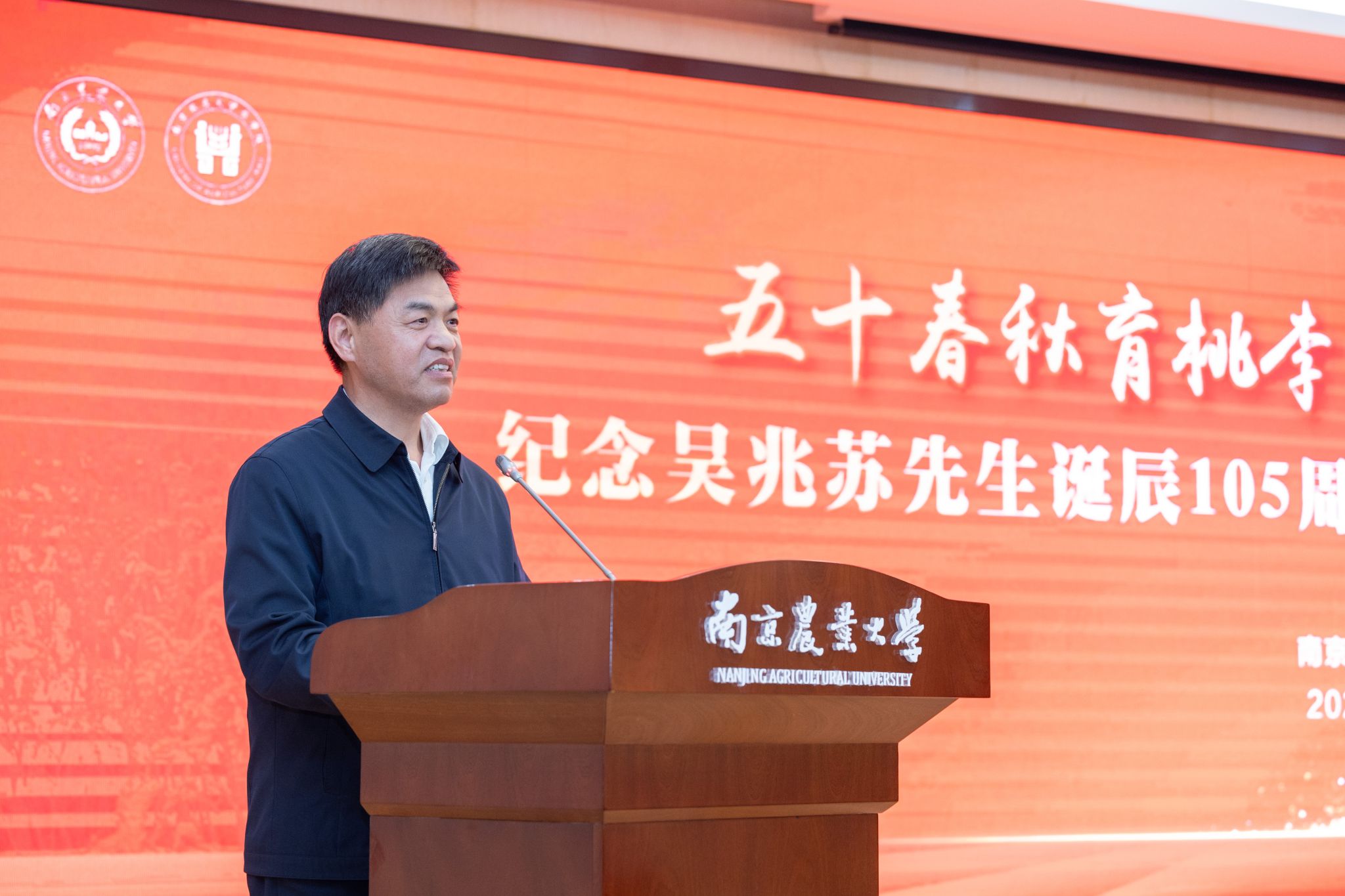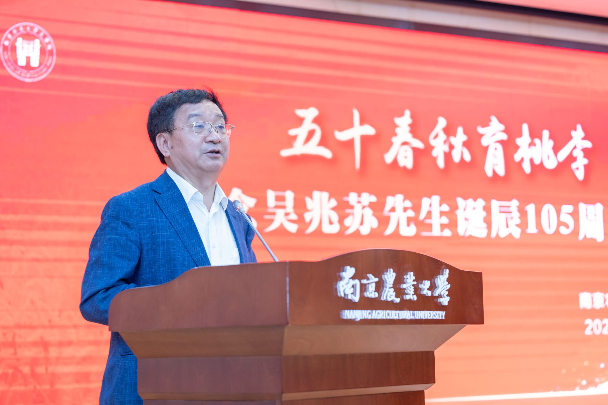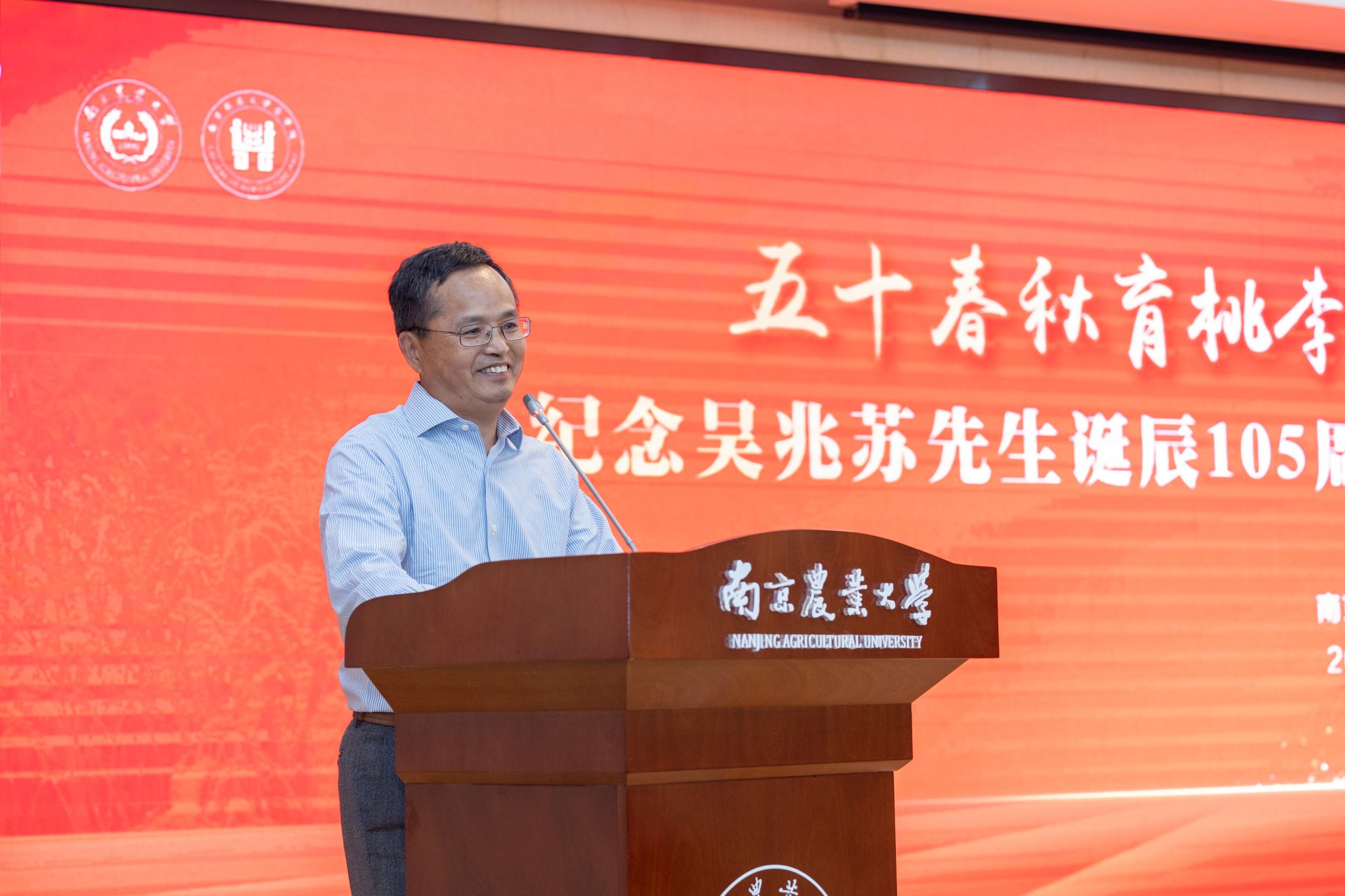 王春春高度赞扬了吴兆苏先生对DB彩票 小麦遗传育种事业所作出的重要贡献,指出吴兆苏先生一生所追求的是坚守科学报国、留学报国的事业,是半个多世纪麦田守望、躬耕田野的事业,是爱业爱生、潜身育人、桃李满天下的事业。王春春表示,此次纪念活动的举办既是对新时代南农精神的凝练与传承,也是奋力回答好“强国建设、南农何为”时代命题的榜样示范,更是对传承和弘扬新时代科学家精神、教育家精神的生动实践,要求全校师生积极贯彻落实总书记指出的农业农村现代化关键在科技、在人才的重要核心精神,争出新成果、争做“大先生”,勇担新使命,为端牢中国饭碗、为农业强国建设作出新的更大贡献。