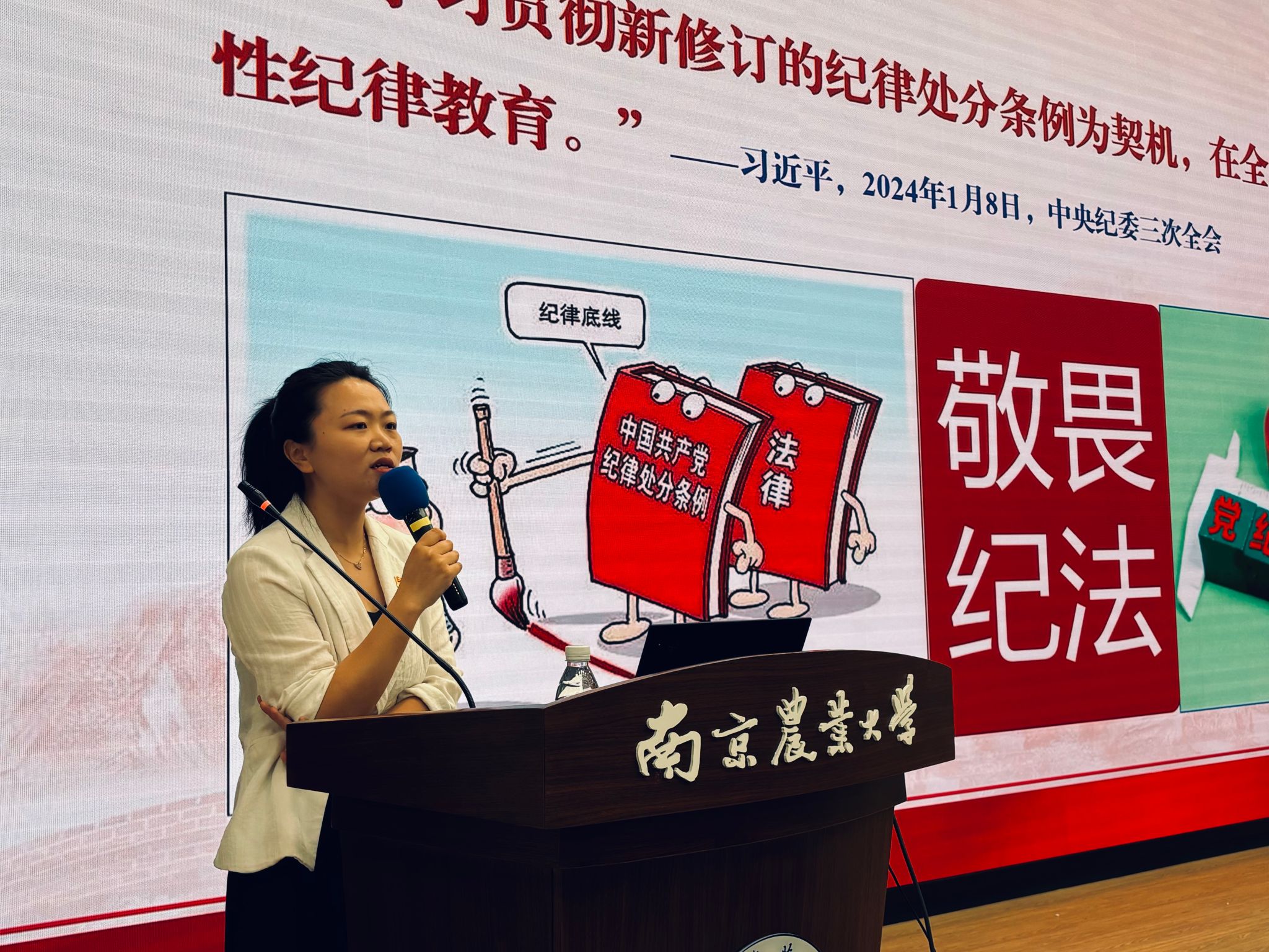 金洁南首先介绍了《条例》修订的背景及意义。她详细阐述了在当前形势下,修订《条例》的重要性和紧迫性,以及修订后的《条例》对加强党的纪律建设、推进全面从严治党的重要意义。接着,她又详细讲解了《条例》修订的主要内容,包括具体条款的修改、新增内容等,使党员们对修订后的《条例》有了更加全面和深入的了解。最后,她重点强调了《条例》精神的贯彻落实,鼓励大家要将《条例》精神内化于心、外化于行,切实做到知行合一。