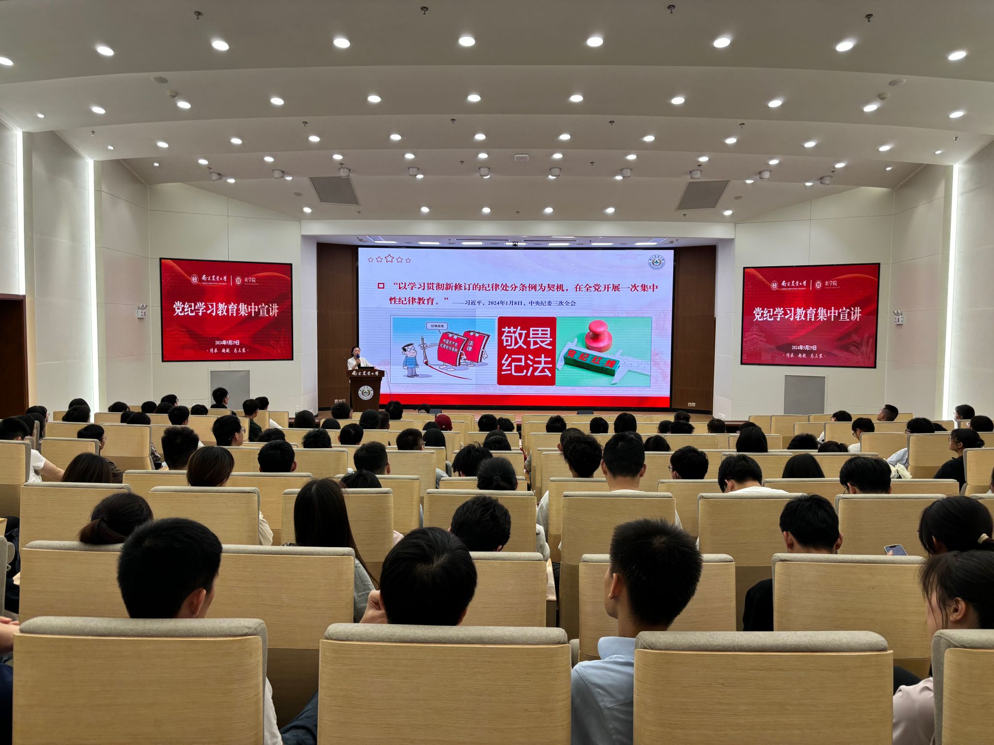 为深入贯彻落实习近平总书记关于党纪学习教育的重要讲话和重要指示精神,深入学习《中国共产党纪律处分条例》,5月29日,DB彩票 组织研究生党员开展了党纪学习教育集中宣讲。活动邀请到了DB彩票 党纪学习教育宣讲团成员金洁南老师担任主讲嘉宾。DB彩票 组织员许娜、研究生辅导员陈杰与研究生党员一起参加了宣讲会。