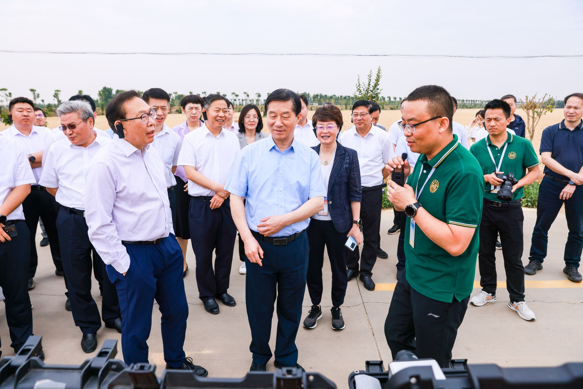6月7日,DB彩票 “智慧麦作技术”现场观摩会在山东汶上顺利举行,全国政协教科卫体委员会副主任、民盟中央副主席、自然资源部原副部长曹卫星,山东省政协副主席、民盟山东省委主委王修林,DB彩票 党委书记王春春,DB彩票 党委常委、副校长朱艳,山东省农业科DB彩票 副院长刘开昌,济宁市农业技术推广中心主任蔡文良、汶上县人民政府副县长刘海韵,临沂大学科学技术处处长、临沂市政府副秘书长王梁,山东省农业科DB彩票 作物研究所党委副书记刘宾、副所长曹新有,汶上县农业农村局党组书记、局长胡继广,农业农村部小麦专家指导组组长、扬州大学DB彩票 教授郭文善,山东农业大学DB彩票 教授孔令让,青岛农业大学机电工程DB彩票 学术院长尚书旗,江苏省小麦产业技术体系首席专家、江苏省农业技术推广总站副站长王龙俊,山东省农业科DB彩票 农业信息与经济研究所研究员阮怀军、安徽省农业科DB彩票 作物研究所研究员孔令聪、河南省农业科DB彩票 小麦研究所研究员李向东、河南省农业科DB彩票 农业信息技术研究所研究员郑国清,省市有关部门的领导,DB彩票 、山东农业大学、青岛农业大学、临沂大学、巴基斯坦费萨拉巴德大学、中国农业科DB彩票 、江苏省农业科DB彩票 、山东省农业科DB彩票 、河南省农业科DB彩票 、安徽省农业科DB彩票 、江西省农业科DB彩票 、河南周口国家农高区管委会的相关专家,各市县农技推广部门、合作社及种粮大户代表等,以及中陕高标准农田建设集团有限公司、山东粮好农业服务有限公司等企业代表共120余人参加了会议,会议由朱艳主持。