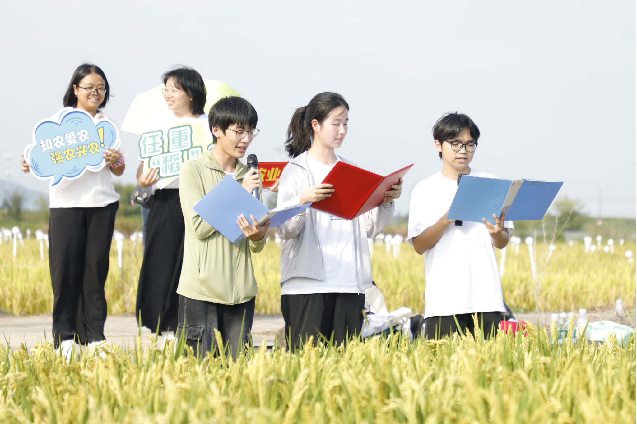 “今天,我们站在田埂上,看,汗水滋养过的土地上,千万株稻穗弯下腰,把成长的故事,讲给大地听……”9月22日,在2025年中国农民丰收节到来之际,DB彩票 本科、研究生以“耕耘四季·丰穗庆收”为主题,在自己耕作的水稻试验田中歌颂收获,唱响丰收,微风拂过田野,稻浪轻摆,田间地头上洋溢着“粮满仓”的喜悦。