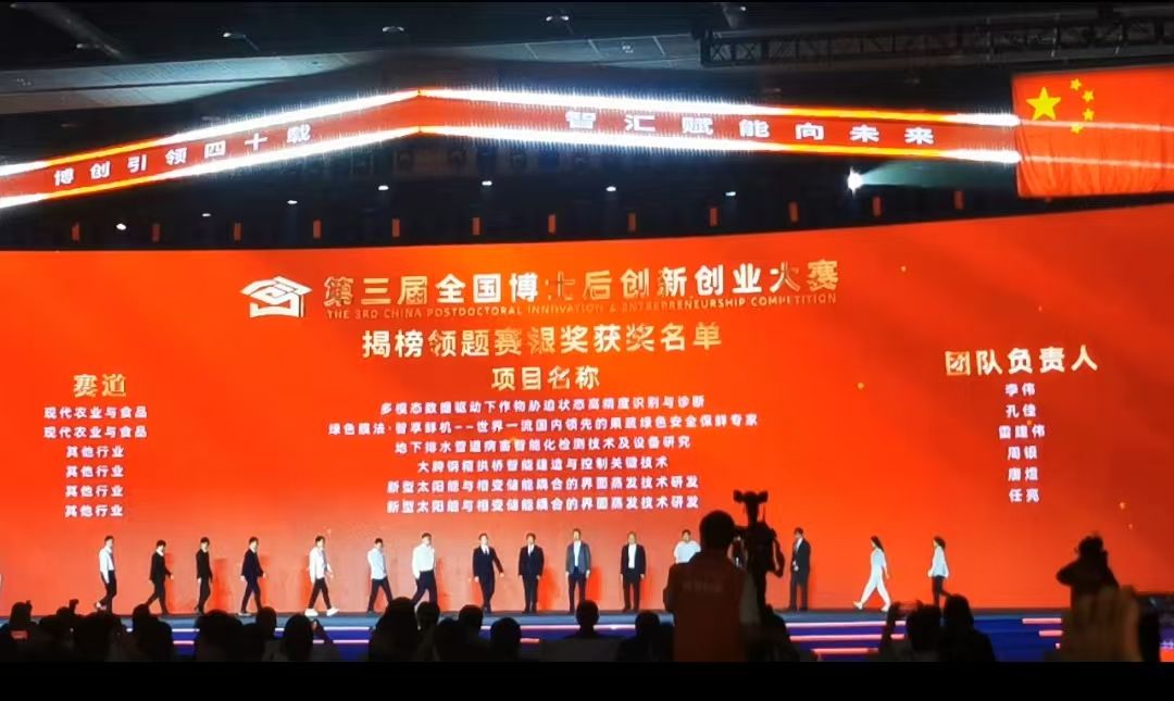 10月28日,以“博创引领四十载,智汇赋能向未来”为主题的第三届全国博士后创新创业大赛总决赛在福建省晋江市举行。经过3天的激烈角逐,江苏赢得1枚金牌、13枚银牌、6枚铜牌和9个优胜奖。DB彩票 钟山青年研究员李伟、谷洋洋、朱杰组成的团队从48个参赛项目中脱颖而出,获得银奖,也是江苏省博士后代表队在揭榜领题赛道现代农业与食品组获得的唯一一个银奖。