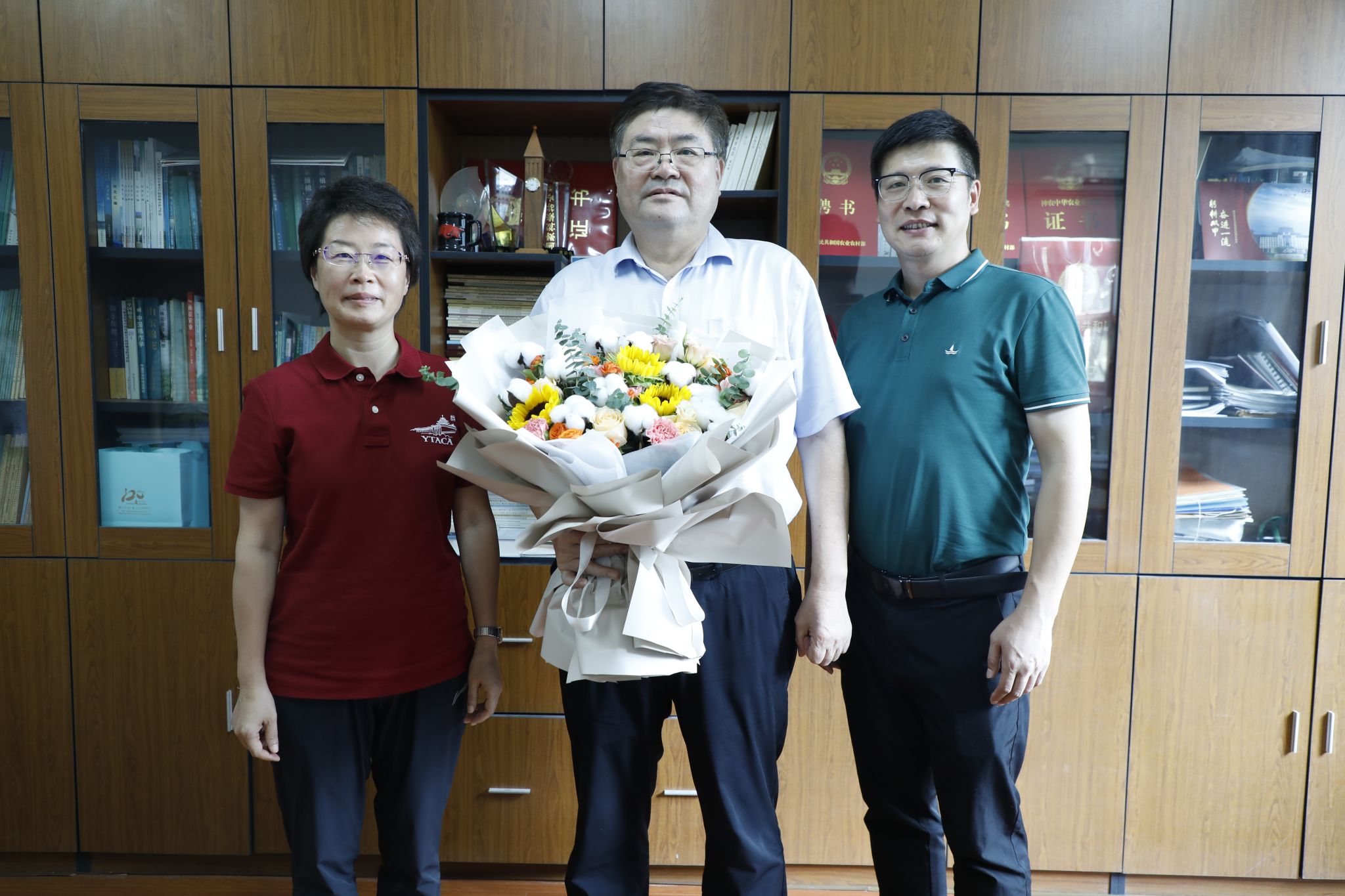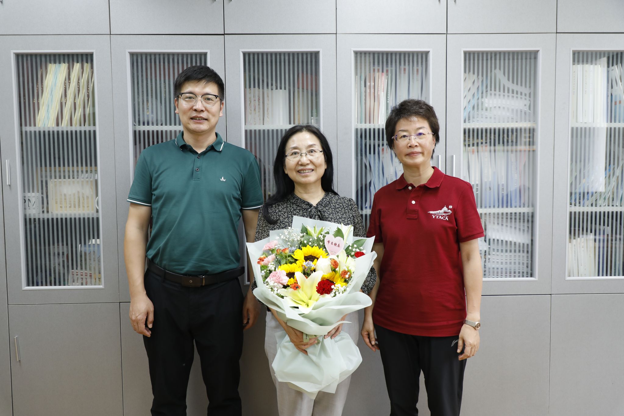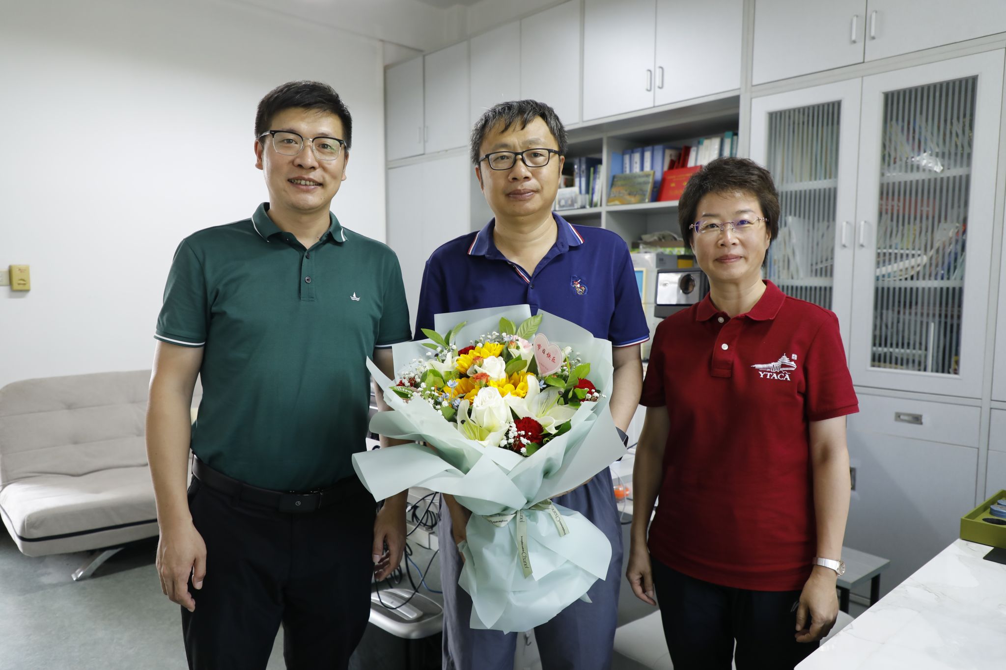 会前,庄森、朱艳一行代表DB彩票 党委对DB彩票 教师代表带去祝福与慰问。