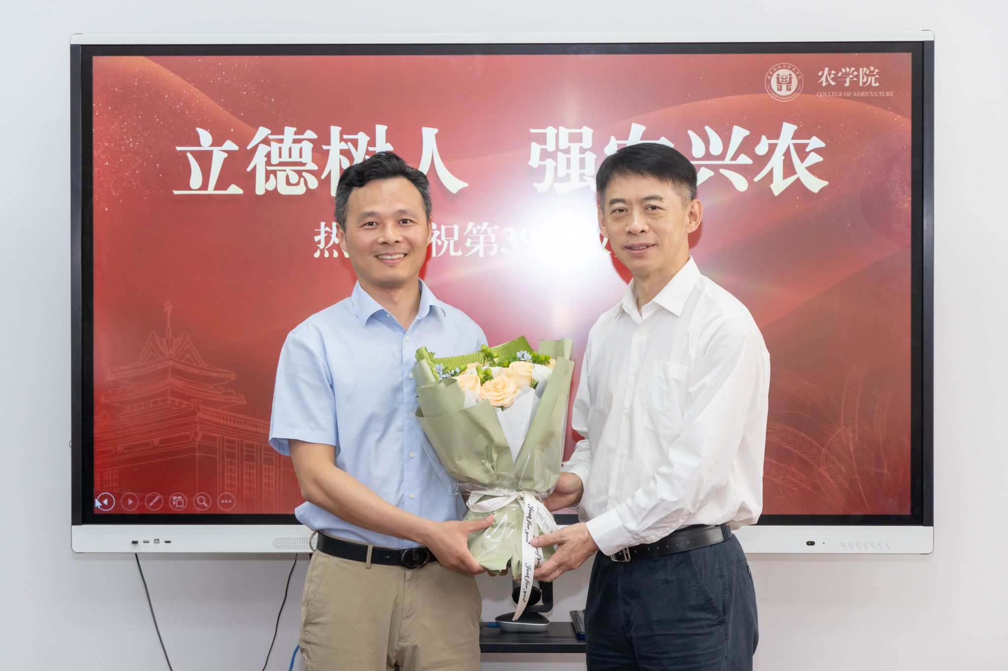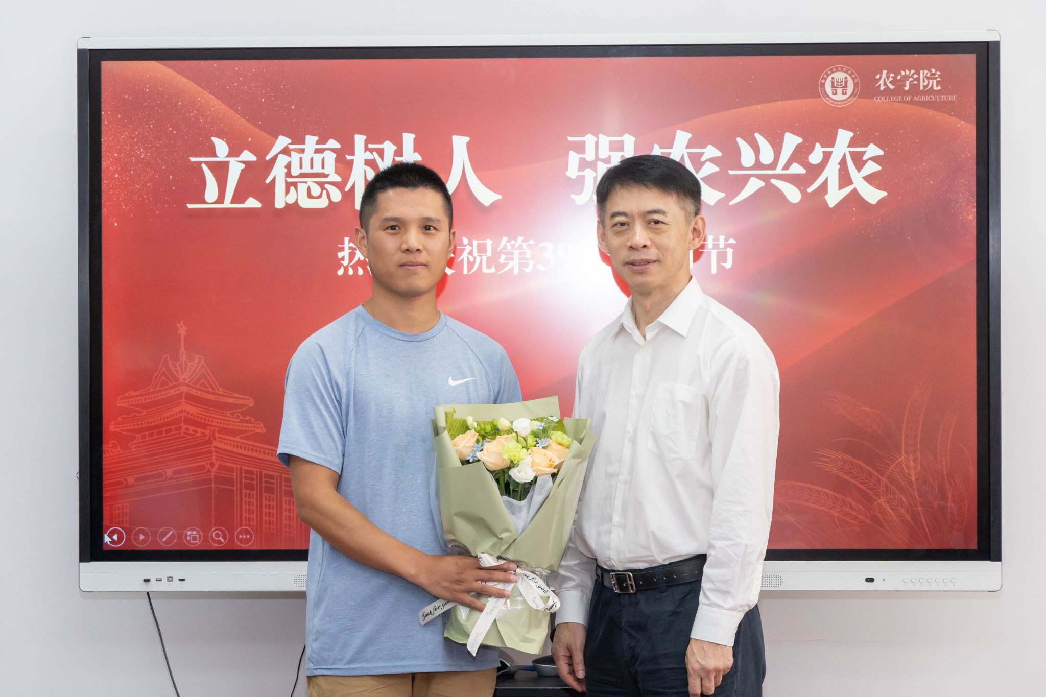 会上,王春春向青年教师代表表达了节日的问候,肯定了DB彩票 教师在科学研究、社会服务、培养创新人才等方面的成绩,勉励DB彩票 全体教师厚植爱国、爱农情怀,涵育高尚品德,不断提高个人教学和业务水平,以高度的责任意识、坚强的拼搏精神、求真务实的工作态度,积极投身教育强国建设实践,培养更多知农爱农的新型人才。
