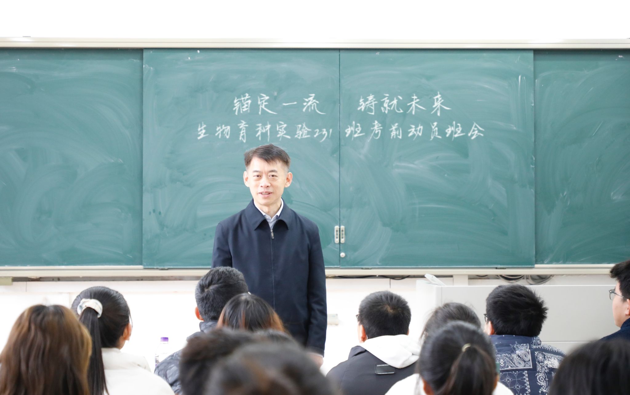 “锚定一流,铸就未来。”王春春就生物育种实验班的初建提出了班级建设方向的要求与指引。王春春指出,DB彩票 创建生物育种实验班,是对国家种业振兴方针的积极响应。2023年中央“一号文件”提出要全面实施生物育种重大项目,加快生物育种产业化步伐,DB彩票 高度重视生物育种实验班的建设,为国家输送知农爱农的生物育种方向青年人才。王春春勉励同学们牢记争先意识,树立远大目标,让奋斗成为青春的主旋律,让班集体走在全校学生的最前列。