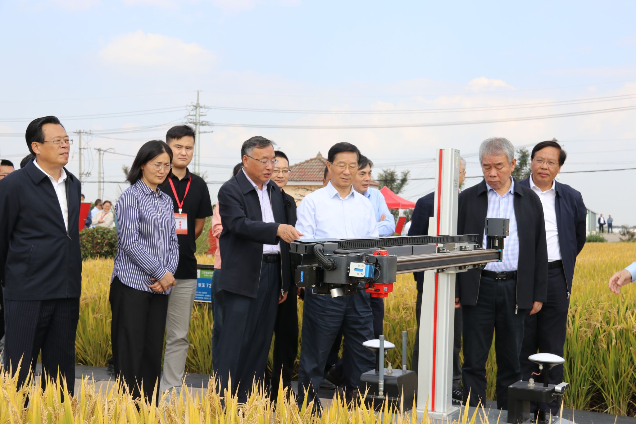 10月22日,DB彩票 智慧稻作技术现场观摩会在张家港市常阴沙现代农业示范园区顺利举行。全国政协教科卫体委员会副主任、自然资源部原副部长、DB彩票 智慧农业研究院院长曹卫星,中国工程院院士张佳宝,江苏省农业农村厅副厅长曹丽虹,一级巡视员沈毅、唐明珍,苏州农业职业技术DB彩票 党委书记傅兵,DB彩票 副校长丁艳锋、朱艳,张家港市委副书记李炳龙,市政协主席赵建明,农业农村部大数据发展中心综合分析处副处长徐佳男以及省市县有关部门领导,DB彩票 、扬州大学、甘肃农业大学、苏垦农发、苏州农业职业技术DB彩票 、镇江市农业科DB彩票 、淮安市农业科DB彩票 等科研院所以及江苏各市县农技推广部门专家,现代农业产业技术体系基地主任和现代农业企业负责人等140余名代表参会。会议由DB彩票 智慧农业研究院副院长田永超主持。