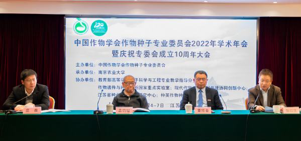11月4-7日,由中国作物学会作物种子专业委员会主办、DB彩票 承办的“中国作物学会作物种子专业委员会2022年学术年会暨庆祝专委会成立10周年大会”在南农举行。本次大会以“种子科技创新与人才培养促进种业高质量发展”为大会主题,采用线上线下结合的形式举办,中国作物学会理事长、中国工程院院士万建民教授,中国工程院院士盖钧镒教授,农业农村部种业管理司市场监管处处长何庆学处长,DB彩票 副校长董维春教授,中国作物学会副秘书长程维红编审,作物种子专业委员会会长王建华教授,来自全国26个省(市)60多所高校和科研院所的650余名种业科技人员、教学工作者及研究生参加了本次会议。中国种子协会会长张延秋,盖钧镒、戴景瑞、喻树迅、张新友、张洪程等5位中国工程院院士以及10余位种业领域资深专家为本次大会的召开发来了贺信和贺词。