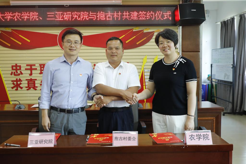调研期间,南农大DB彩票 、三亚研究院党政负责人一行赴崖州区抱古村调研,三方签署了党建和大学生社会实践基地共建协议,并就组织联建、产业联促、活动联抓、实事联办等方面的深入合作交换意见。