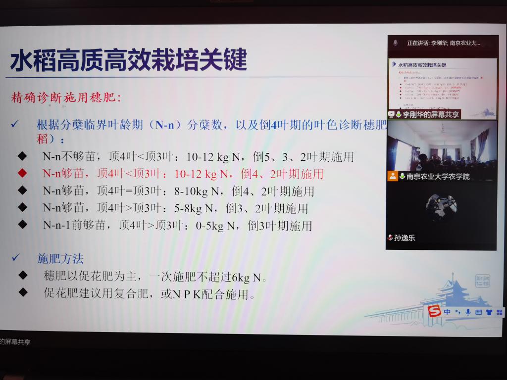 会后,江苏水稻产业体系岗位专家、DB彩票 教授李刚华应邀通过线上就水稻的育苗、插秧及生长过程管理为当地村民开展农技培训,期望咸宁村村民,用南农金奖大米践行藏粮于地,藏粮于技,保障国家粮食安全。同时,捐赠的视频会议系统设备也正式开始投入使用。
