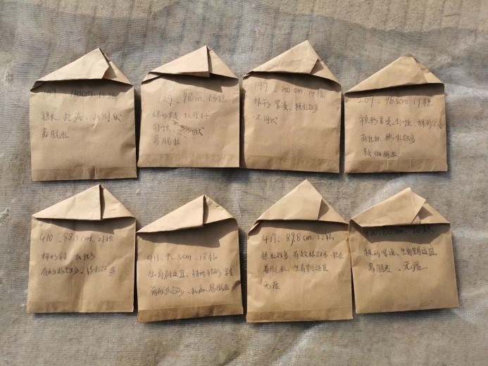 到达基地后的同学们先是有序完成入住,后经短暂的休息,很快便投入了实习课程。实习分为育种和栽培两大部分,分别针对水稻、玉米、大豆、棉花四个作物进行作物成熟期测产、性状考察、室内考种、选种等操作的训练。白天,同学们各自分工,组成不同的小组,在田间有序地进行各项测量工作;晚上,同学们则将自己白天收集到的数据汇总到一起,进行品种比较或产量计算。虽然天公不作美,在实习的最后几天,基地遭遇了连续降雨,但是同学们并没有因此懈怠,依旧按时前往教室,进行理论知识的学习或是室内考种工作,还有的班级趁着雨势较小,抢着时间去田间收回一些作物继续进行室内考种工作。