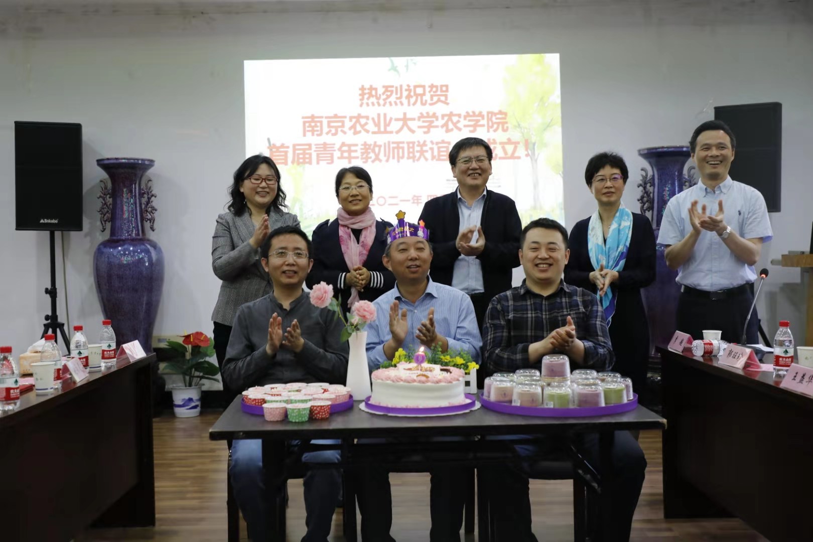 青联会成立仪式上举行了集体生日会,生日临近五四青年节的三位青年教师王益华、姜华和贺建波一起点燃生日蜡烛,大家欢聚一堂共同为青联会成立和五四青年节庆生,现场气氛自由活跃,拉近了彼此之间的距离,增进了感情。青联会常务委员们也借此机会介绍了本年度的相关活动安排。
