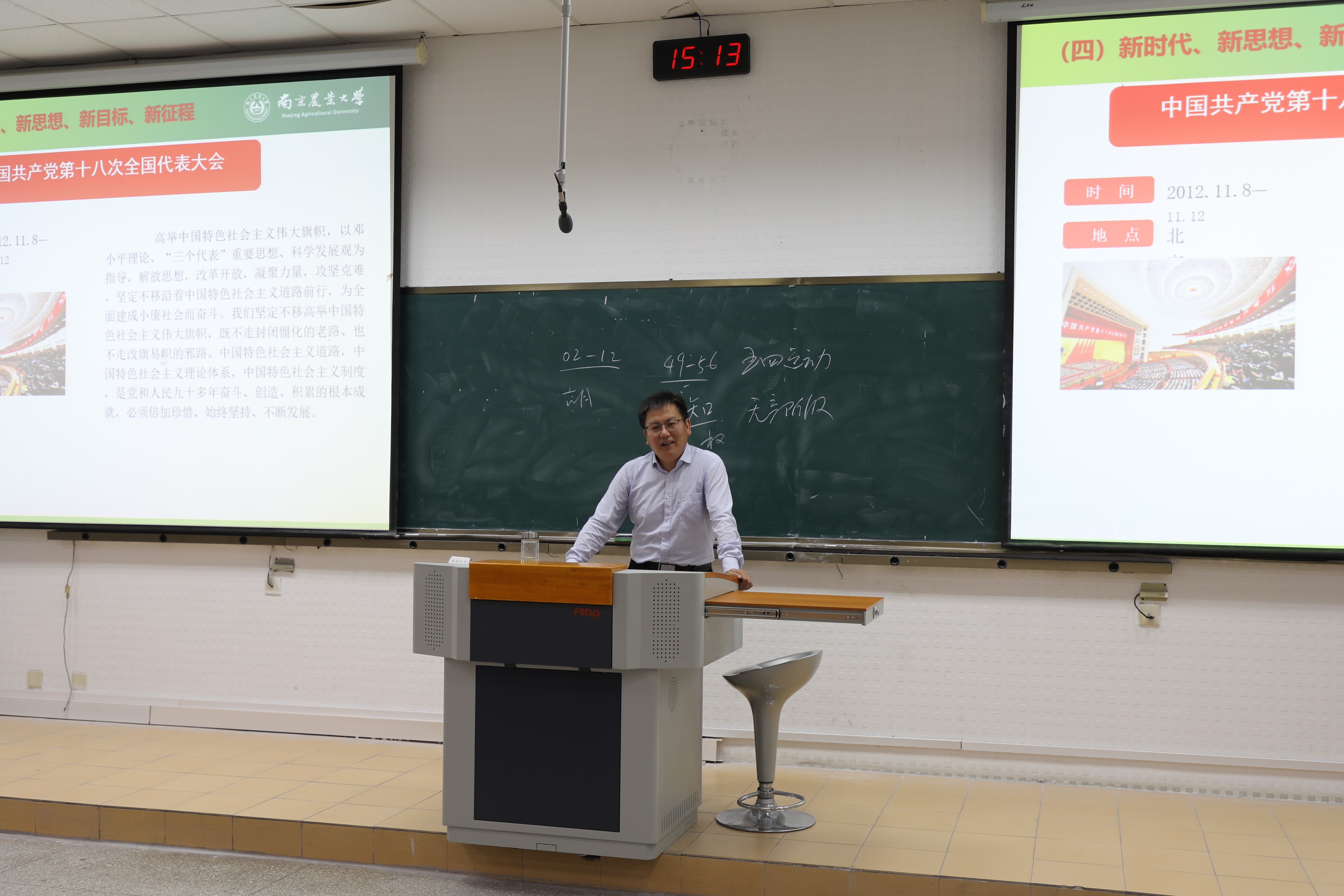 戴廷波以党章中中国共产党的行动指南为初篇拉开了党课的帷幕。随后,他从中国共产党的奋斗历史讲起,经过新民主主义革命时期、社会主义革命和建设时期、改革开放和社会主义现代化建设新时期,终于步入如今的新时代,有了新思想、新目标、新征程,展现了中华民族从站起来、富起来、到强起来的伟大历程。