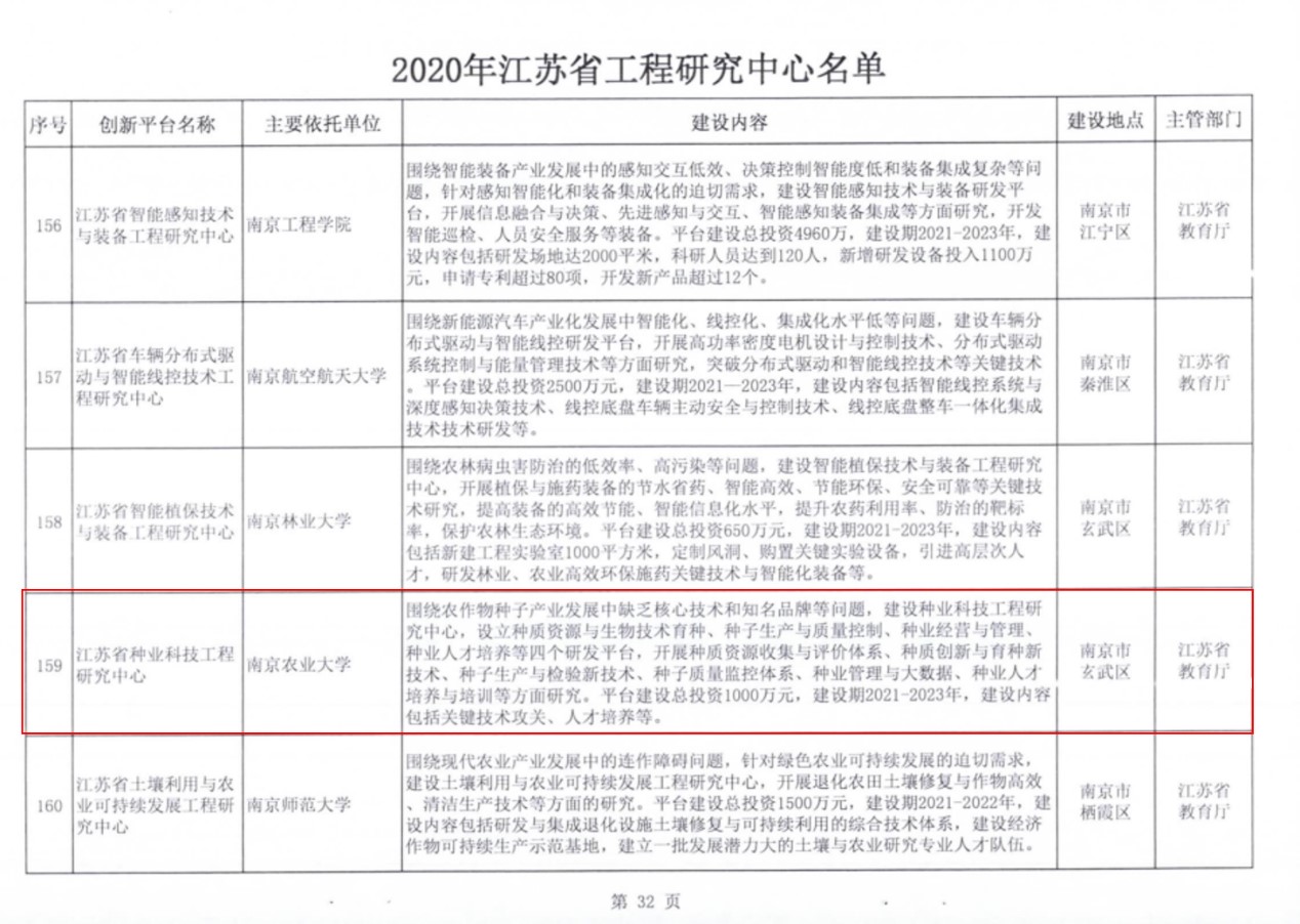 DB彩票 申报的“江苏省种业科技工程研究中心”获江苏省发改委批复立项建设