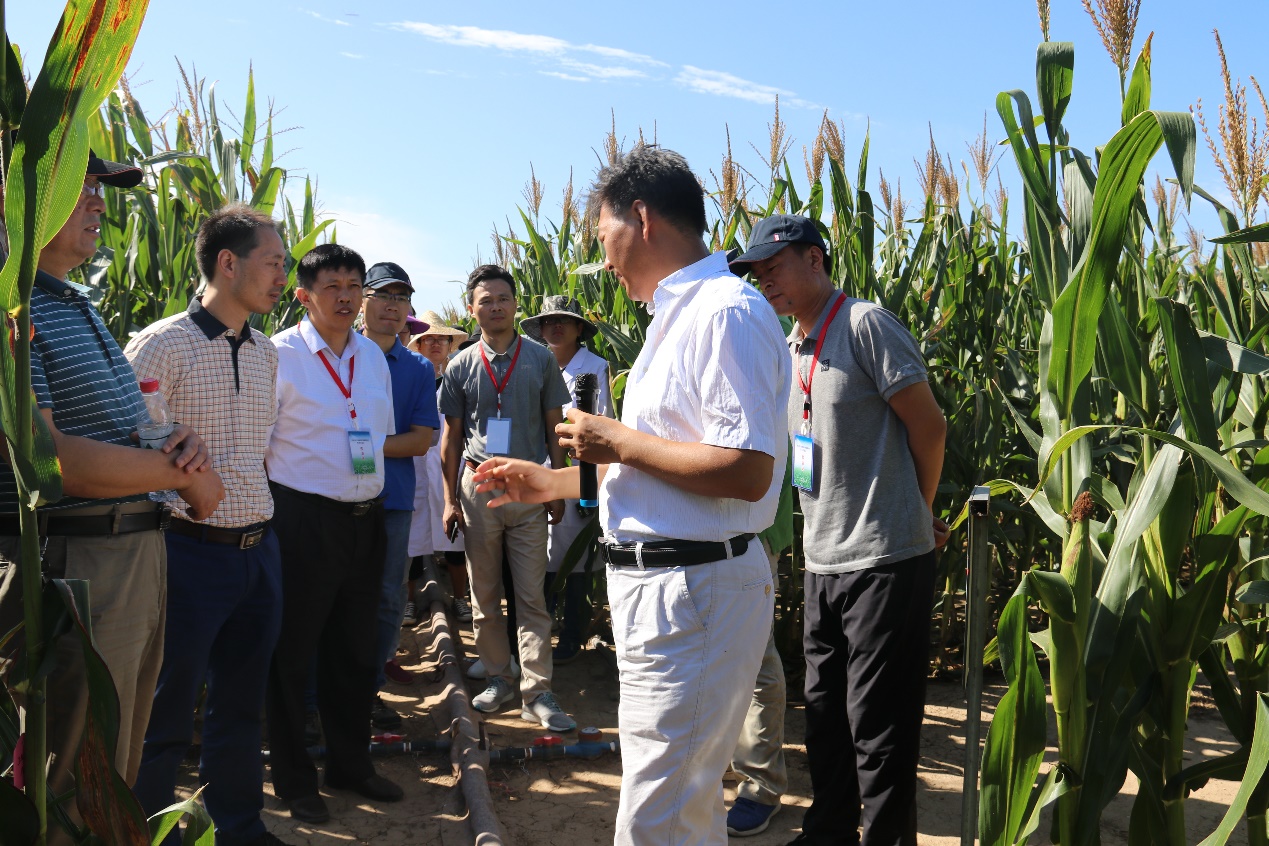 中国农业科DB彩票 作物科学研究所研究员王克如带领与会专家们深入田间进行观摩,重点介绍了玉米智能水肥控制系统、不同玉米品种的氮肥试验和不同播期的玉米试验。田间玉米植株在不同氮肥处理和品种间长势差异明显,不同播期下的玉米生育进程差异尤其显著。针对玉米植株的特点,王克如还介绍了专门用于玉米冠层监测诊断的相关技术与平台,给专家们留下深刻印象。