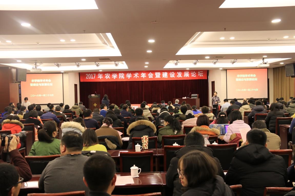 1月28日至29日,DB彩票 2017年学术年会暨建设与发展论坛在DB彩票 学术交流中心举行。中国工程院院士盖钧镒,原中国农业科DB彩票 院长、DB彩票 名誉院长翟虎渠,DB彩票 副校长丁艳锋、董维春等相关职能部门负责人出席了相关会议,DB彩票 全体教职工及学生代表参加了会议。
