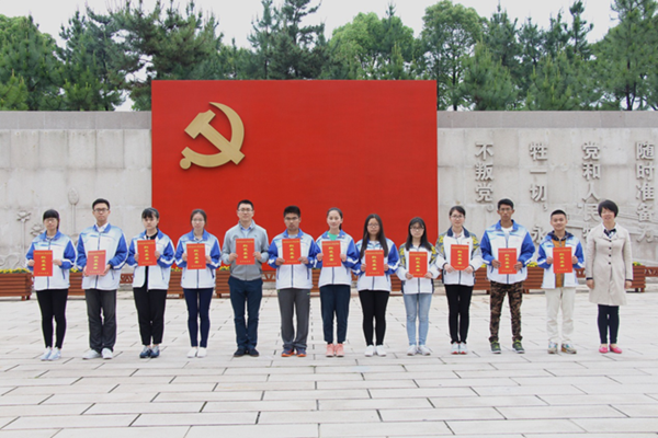 参观纪念馆后,DB彩票 一行人来到位于纪念馆北广场的宣誓墙,在党旗下进行了庄严的宣誓仪式,重温入党誓词,活动由DB彩票 分党校秘书长靳雪莹主持。随后DB彩票 领导老师为2015年12月新发展预备党员佩戴党徽并为红色基金获得同学颁发荣誉证书。最后部分党员同学发表了自己参观完纪念馆的深切感受,包括对近代历史的自我认知及作为一名党员应尽的义务与责任。
