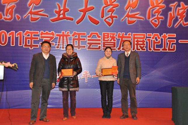 中国工程院院士、江苏省里下河地区农科所程顺和,南京市农业委员会主任方中友2位校友获得杰出服务奖,曹爱忠、黄骥2位年轻副教授获优秀新人奖。中国工程院院士盖钧镒、江苏省副省长曹卫星、中国农业科DB彩票 作物所所长万建民、DB彩票 副校长丁艳锋分别为以上获奖人员逐一颁奖。此次颁奖仪式简朴而隆重,广大教师深受鼓舞,在与会人员热烈的掌声、热情的祝贺声中,DB彩票 英才奖励基金第二届杰出服务奖、优秀新人奖颁奖仪式圆满结束。