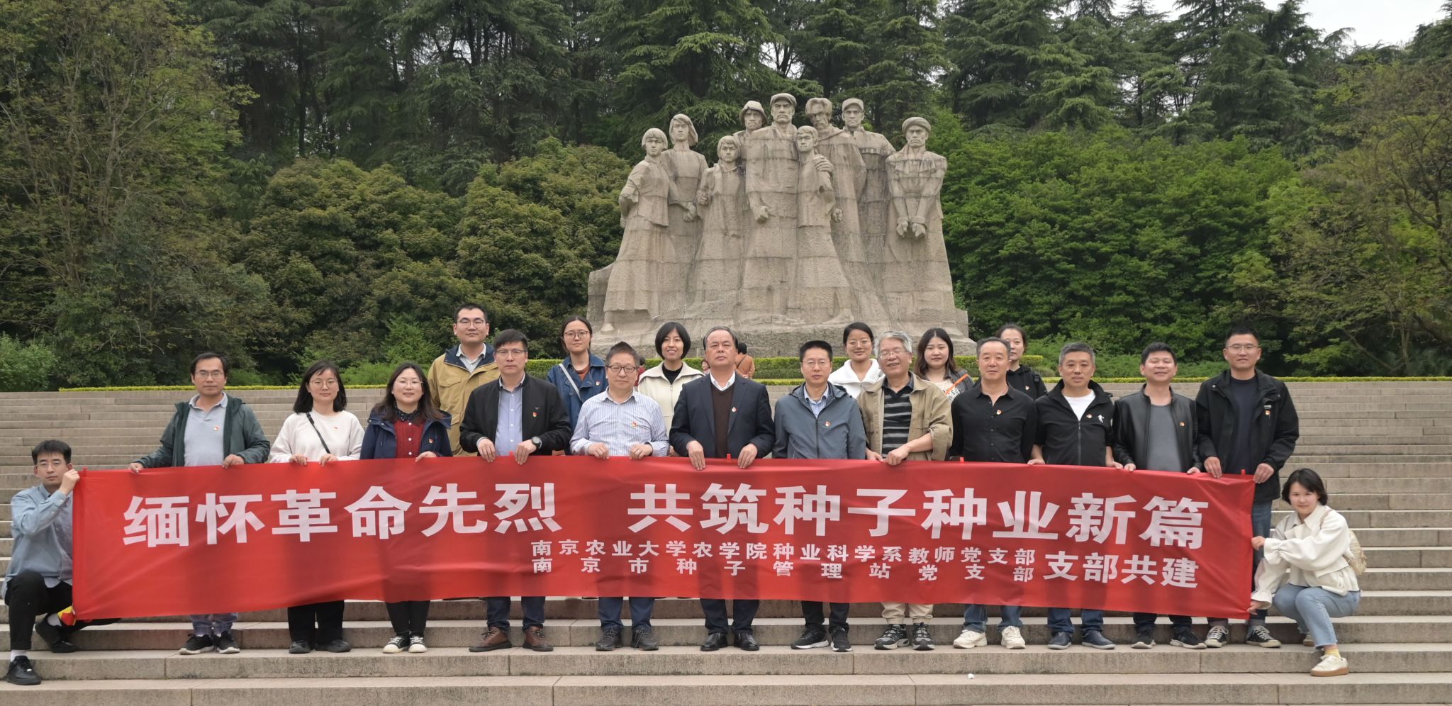 会议结束后,双方支部党员一同前往雨花台烈士陵园献花缅怀先烈。在庄森书记的带领下,党员们在烈士纪念碑前重温了入党誓词。在参观雨花台烈士陵园纪念馆之后,本次活动落下帷幕。在种业振兴产教深度融合背景下开展支部共建活动具有重要意义,通过党支部共建有效促进了DB彩票 种业科学系与南京市种子管理站在人才培养和科研业务方面的深度合作。
