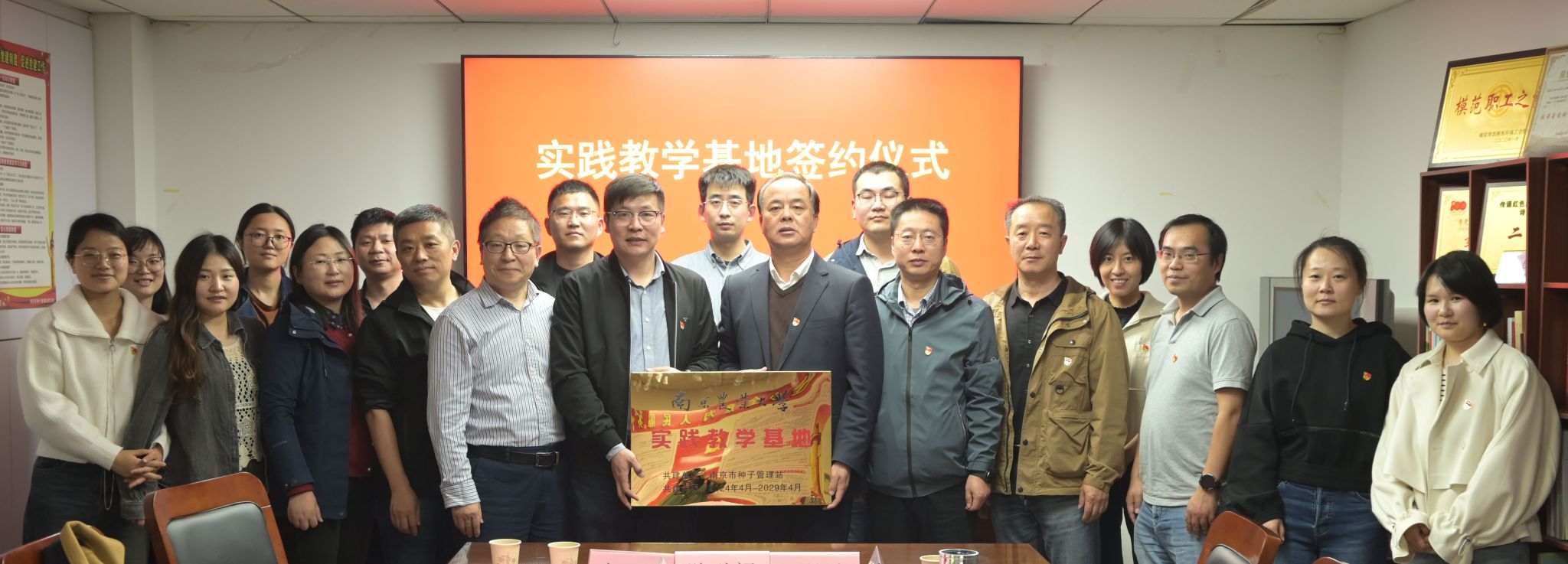 邢后银站长致欢迎辞,并介绍了南京市种子管理站的主要职能和党支部建设情况。庄森书记介绍了DB彩票 的基本情况,回顾和肯定了双方的合作基础,对南京市种子管理站长期以来对DB彩票 建设发展给予的大力支持表示由衷地感谢。种业科学系教师党支部书记鲍永美教授和南京市种子管理站党支部书记邢后银站长签订了支部共建协议,种子科学与工程产教融合品牌专业负责人张红生教授与南京市种子管理站邢后银站长签订了产教融合实践教学基地合作协议,并进行了揭牌仪式。随后,双方支部党员进行了支部建设和合作意向交流。邢后银站长交流了在种子行业发展调研和青年党员业务能力培养方面的举措和计划;张红生教授表达了在种子检测方面加强合作的意向;鲍永美教授提出了要持续加强基地建设并联合开展本科生教学实习和专业硕士学位研究生实践环节的教学;钱虎君副教授建议聘请种子管理站专家来校讲课,加强种业双师型教师队伍建设。