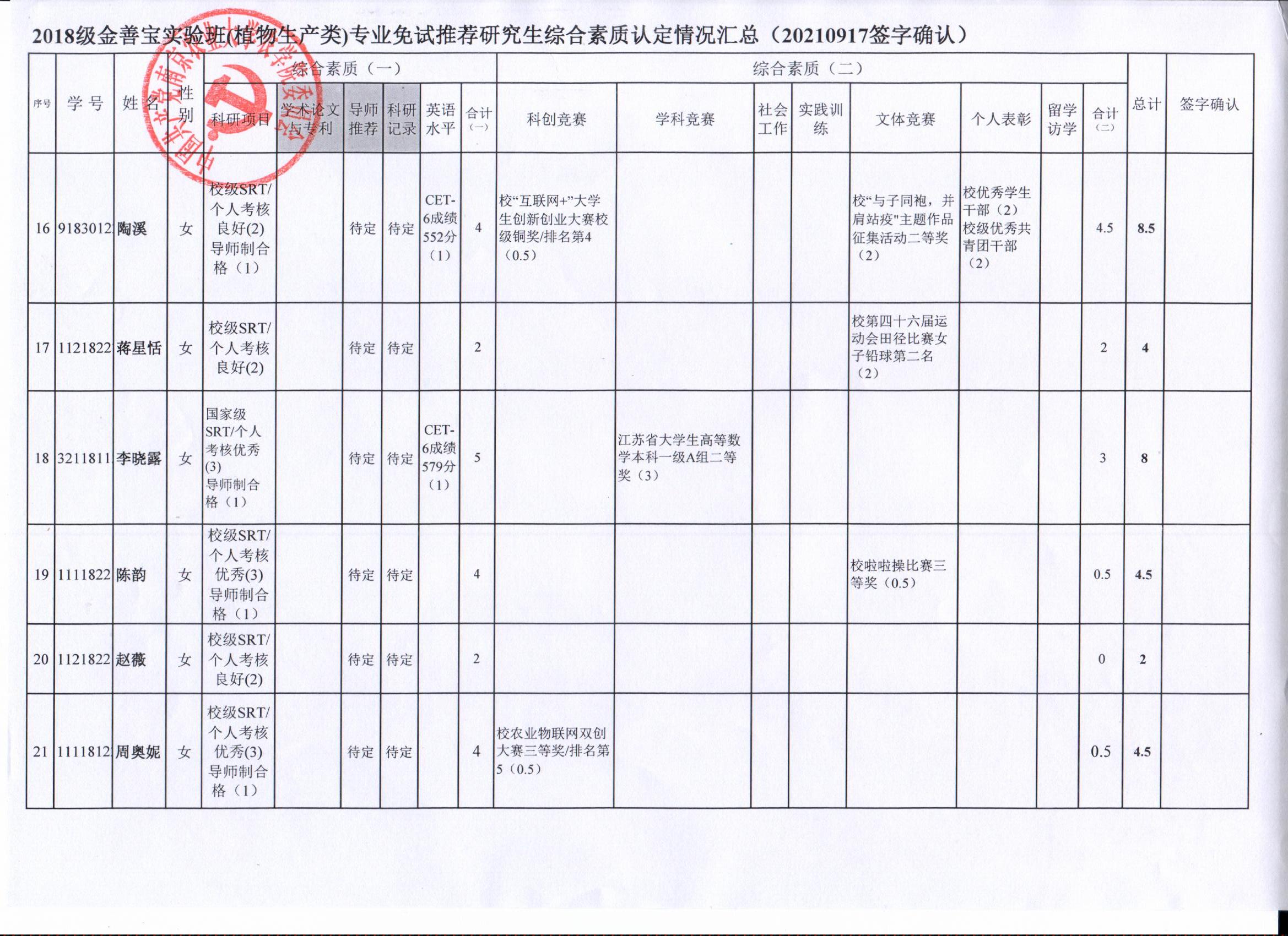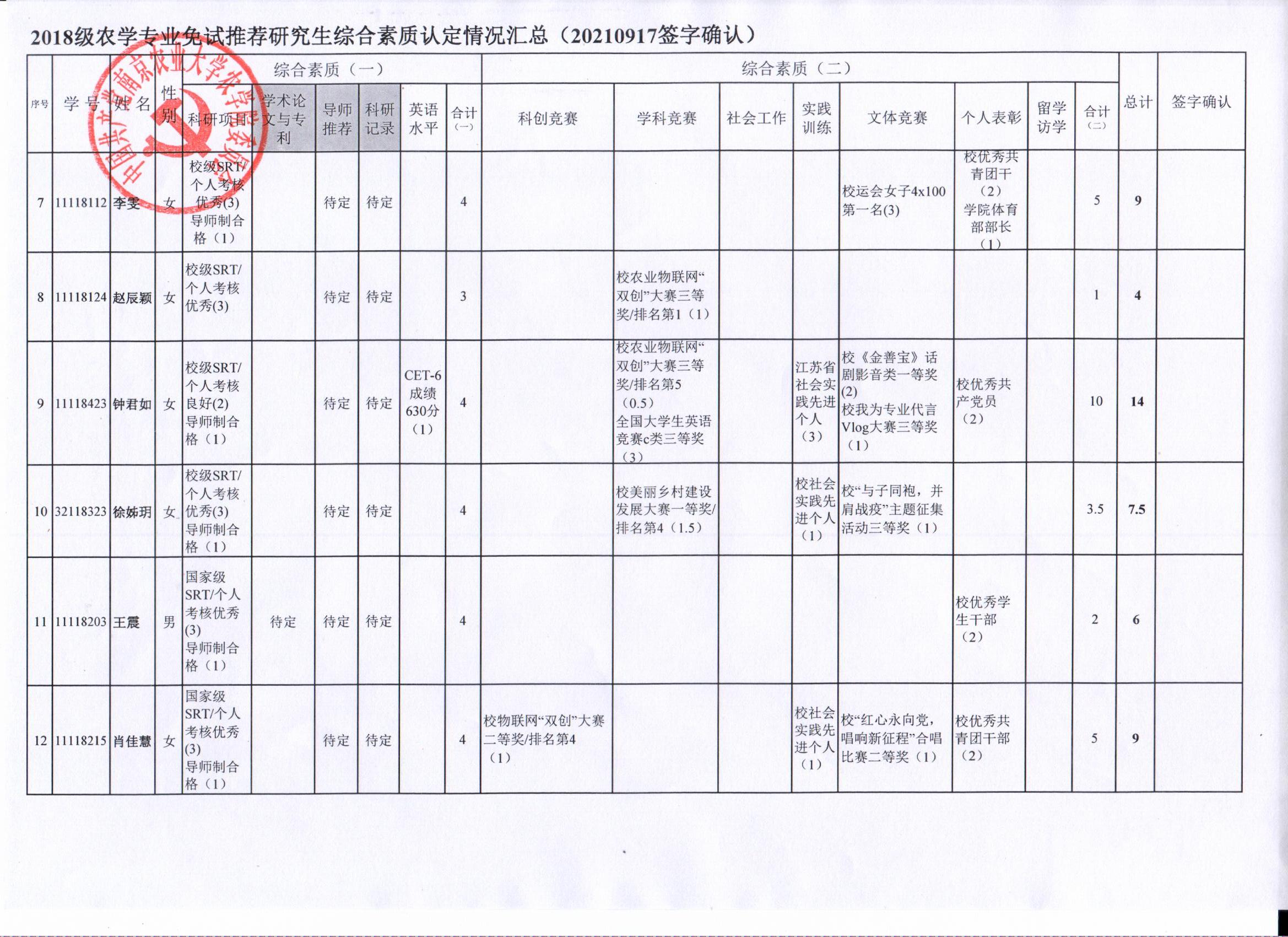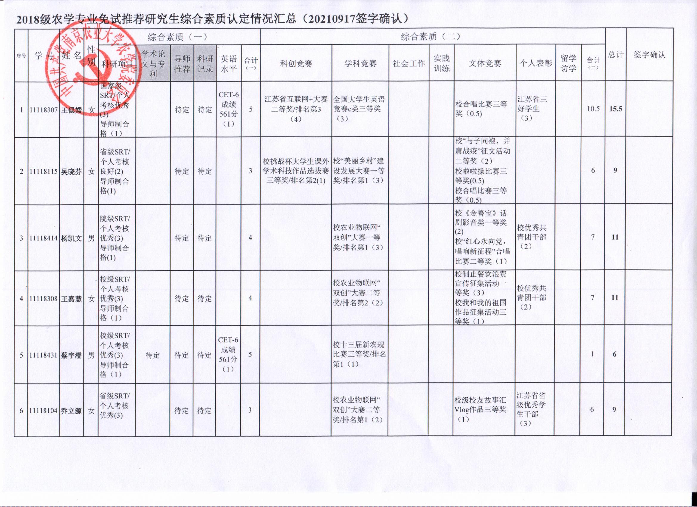 审核及学生签字确认,综合素质(一)第一、五类与综合素质(二)所有类别得分情况已于9月17-19日进行公示,现予以再次公示。