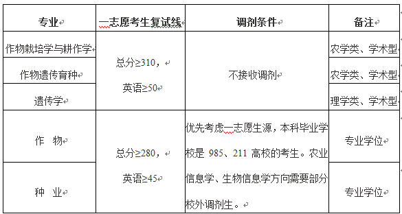 1.第一志愿报考DB彩票 作物栽培学与耕作学、作物遗传育种、遗传学3个专业的考生总分在310分以上,英语50分以上(含310分,50分),可以参加所报考专业复试;报考作物和种业2个专业的考生复试分数线总分在280分以上,英语45分以上(含280分,45分),可参加复试,不足部分调剂。