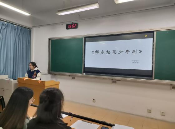 在主题分享环节,荆子涵同学通过电影《保你平安》告诉大家要学会爱自己,生活中总有一些苦,它会让你委屈难过,又让你浴火重生,破茧成蝶!勉励大家都能笑对生活,即使面对挫折,也能在平凡的日子里闪闪发光。张语婕同学通过《鲜衣怒马少年时》这本书带领同学们走进唐诗里的梦想与远方、宋词里的风雅与深情这些中国人最美的记忆中。陈治屹和王小语同学向大家推荐了南京城墙博物馆。在南京城墙博物馆,可以感受古与今的完美融合、古城墙与新建筑的相伴相生,感受环境艺术设计的魅力,品味时代的变迁。