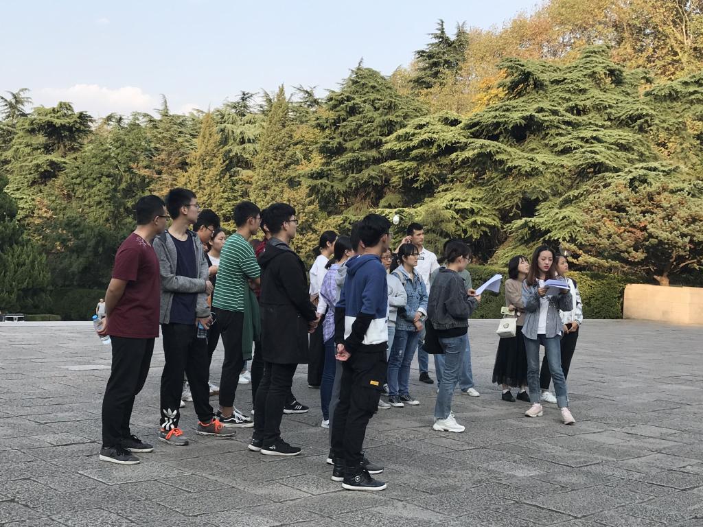学员从北大门进入陵园,在九烈士就义群雕像前合影后,由讲解志愿者带领参观雨花台烈士陵园,从九烈士就义群雕到忠魂亭,在江苏公安英烈纪念墙、雨花台纪念碑、《国际歌》及《国歌》雕刻墙、纪念桥、雨花台纪念馆等地点进行参观讲解。走过用革命烈士鲜血和生命铸就的道路,在志愿者的讲解中更加深入地了解了中国革命史,了解革命先烈血泪交织的光辉岁月。