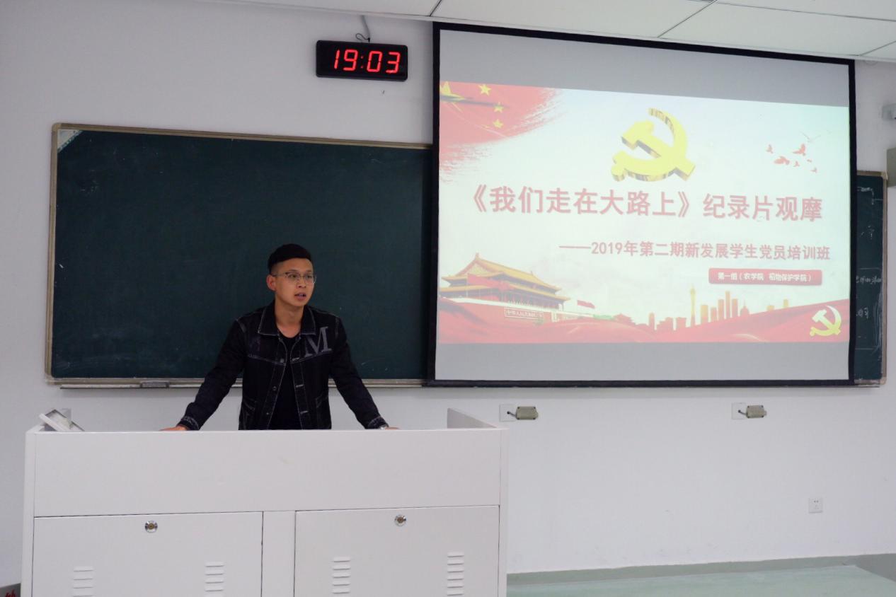 质量作为发展党员工作的生命线。为培养思想坚定、素质过硬的“高质量”学生党员,11月7日晚,来自DB彩票 、植物保护DB彩票 的2019年第二期新发展学生党员培训班成员在主楼218顺利开展《我们走在大路上》纪录片观摩活动。