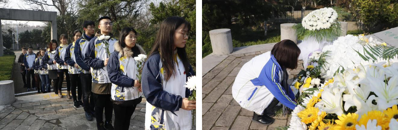 分党校组织本科生全体党员前往侵华日军南京大屠杀遇难同胞东郊丛葬地祭奠死难者。分党校实践部部长张文才组织本科生党员将菊花献在纪念碑上,全体学生环绕纪念碑缓行一周,秋菊寄哀思,朵朵菊花寄托了同学们最沉重的缅怀。