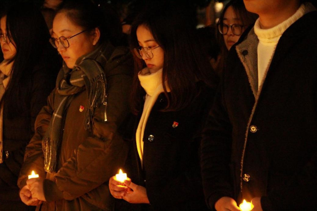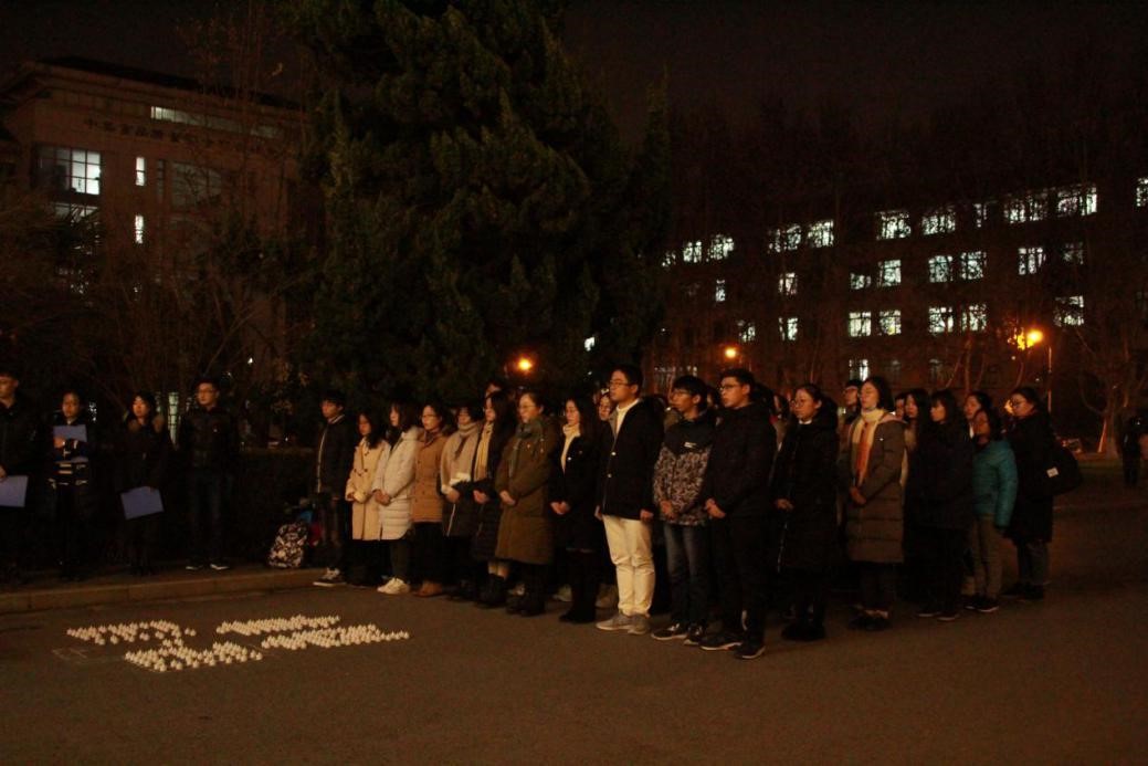 12月12日晚,DB彩票 分党校在DB彩票 主楼门前开展烛光祭悼念活动。本科生全体党员及部分积极分子参加了此次活动。