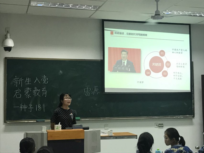 启蒙会上,各位带班党员由浅入深从党的历史、党的章程入手,让新生们对于中国共产党的奋斗历程和章程有基本的了解和认识。继而对党员的权利和义务进行了阐述,明确了身为一名共产党员的行为准则。最后,带班党员们带领新生学习了入党流程介绍和入党申请书撰写要求。