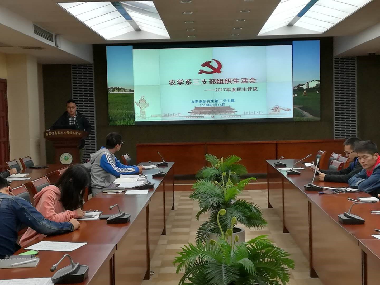 3月15日,农学系研究生第三党支部在国家信息农业工程技术中心会议室召开了专题组织生活会,会议由支部书记李松阳主持。支部各位党员、预备党员,按照个人自评、党员互评、民主测评、组织评定程序,对党员进行评议。各位支部成员在会前,提前填写党员评议登记表,对自身在2017年度进行了中肯的个人的小结,并于会上进行了提交;通过《党员民主测评表》的填写,各支部成员对支部里的各位同志进行了互评;同时,通过填写《党支部班子民主评议表》,各支部成员对本届支部支委会的成员进行了评议,并提出了宝贵的建议和意见。