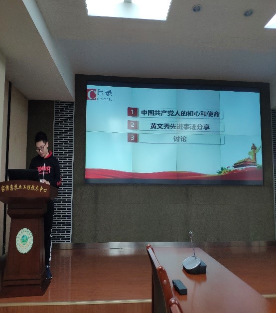 10月21日,农学系研究生第三党支部在国家信息农业工程中心五楼会议室,集中学习了习近平总书记关于“不忘初心、牢记使命”论述的集中学习、“优秀党员黄文秀同志的事迹分享”、“党员同志的初心与担当”三部分内容。深入贯彻落实了习近平总书记在“不忘初心、牢记使命”主题教育工作会议上的重要讲话精神;切实提高支部广大党员同志的思想认知、理论素养。会议由支部书记常春义同志主持。