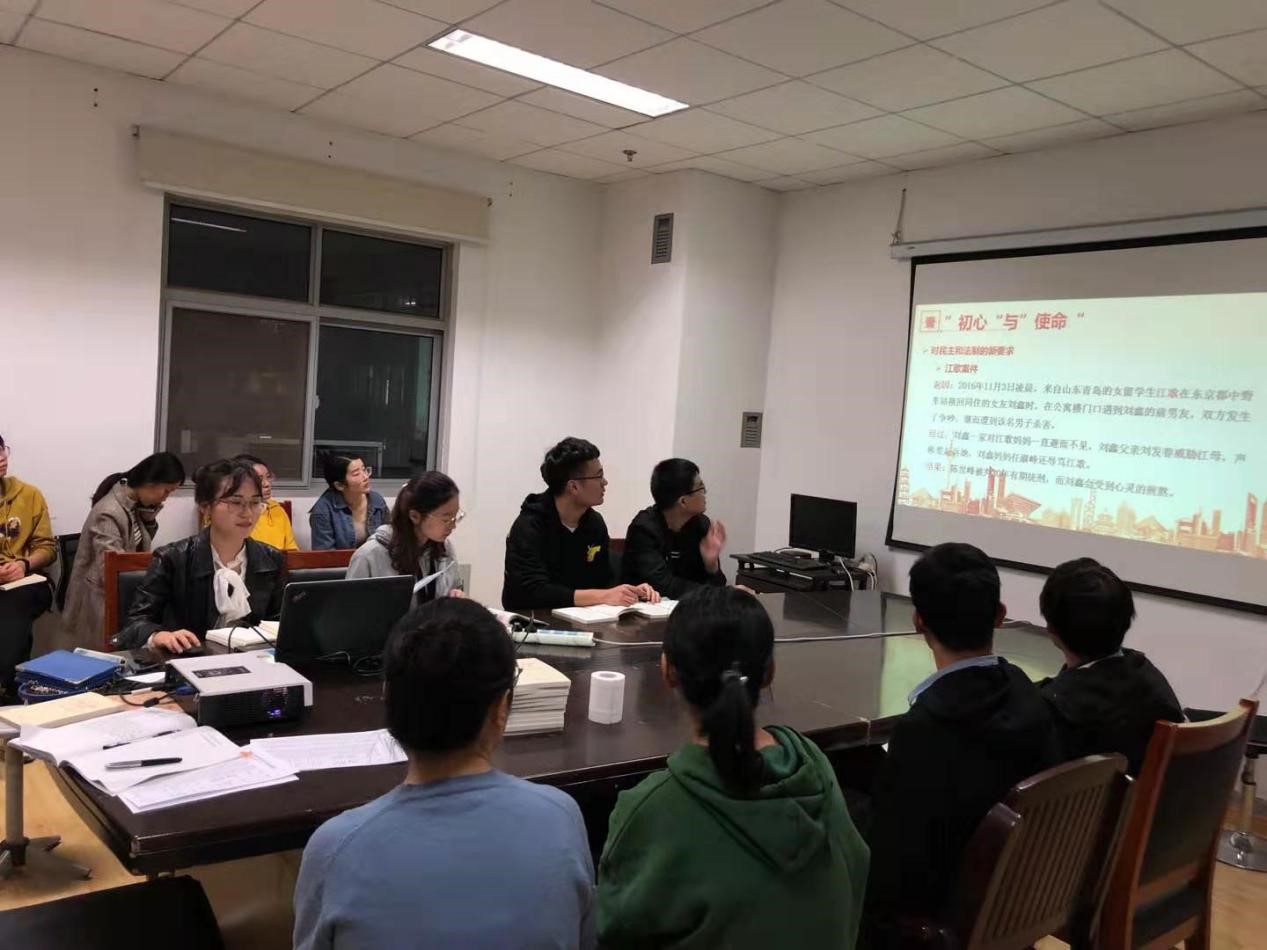 会议上首先对中国共产党人的“初心”和“使命”进行了学习。中国共产党人的初心和使命,就是为中国人民谋幸福,为中华民族谋复兴。这个初心和使命是激励中国共产党人不断前进的根本动力。其中会议着重强调了,进入新时代,中国社会的主要矛盾已经转化为人民日益增长的美好生活的需要和不平衡不充分的发展之间的矛盾。这一变化表明人民不仅对物质文化生活提出了更高的要求,而且在民主、法制、公平、正义、安全、环境等方面的要求日益增长。其中对于“民主”和“法制”方面列举了“江歌案件”提醒我们党员要分两个角度看待这个问题,江歌被害案,是个法律事件;刘鑫及其父母在案发后的表现,是个道德事件。网络上讨论的最激烈的是后者,甚至有些过激,我们需要明白的是,社会的道义声讨当然需要,但是对道德的审视,不能替代法律审判,我们要把握好这个度,不能逾越了这根红线,不然就成了道德绑架。