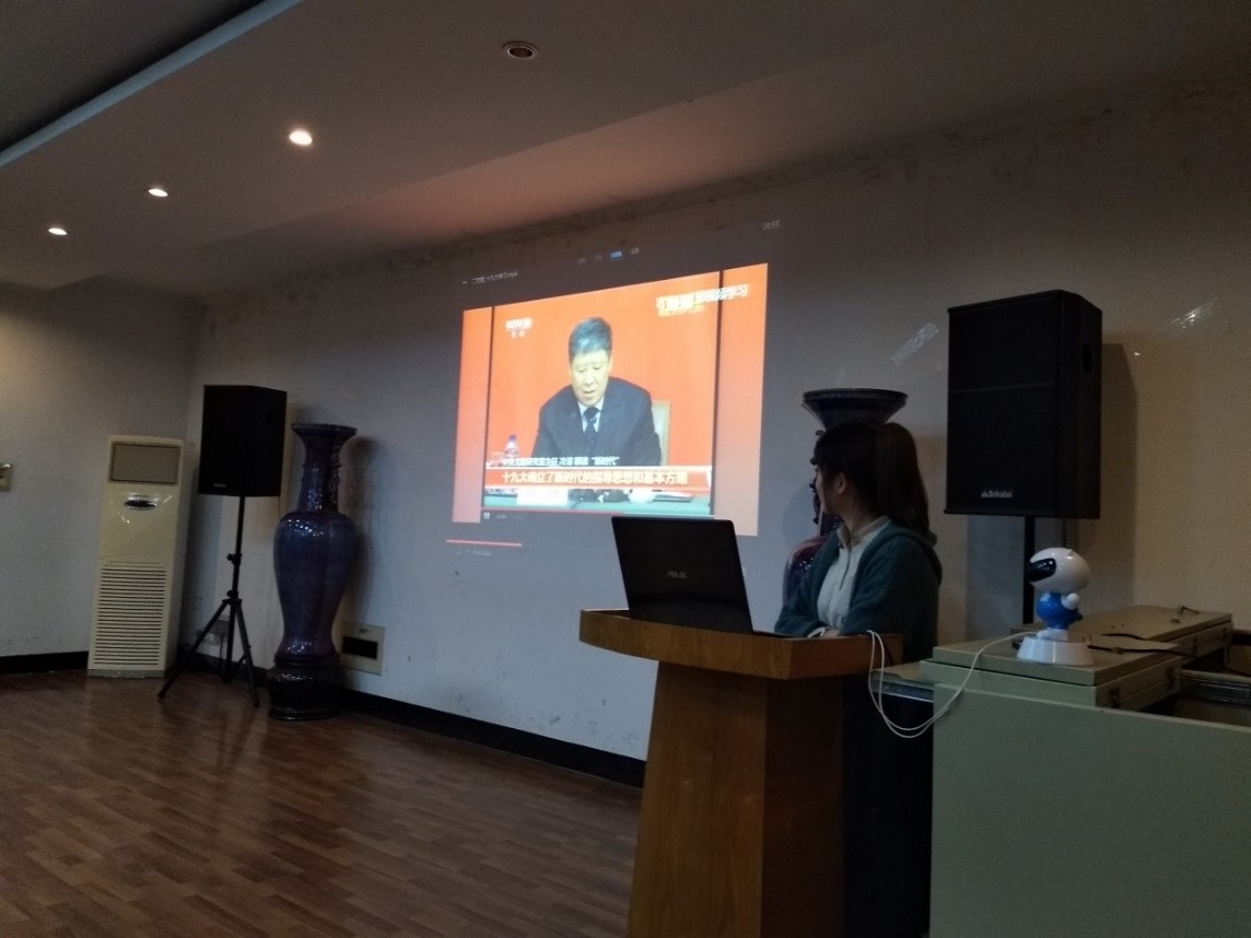 支部书记向大家介绍支部调整后的结构及支委会成员后,新上任的宣传委员王永慈带领支部全体成员进行了党的十九大的视频学习。通过视频的学习,我们了解了党的十九大的会议主题、十个方面历史性成就、两个重大判断、一个历史使命与“四个伟大”、一个重大思想、新时代坚持和发展中国特色社会主义的14条基本方略、两个重要时期、两个阶段(“两步走”)及九个方面理论分析和政策指导。