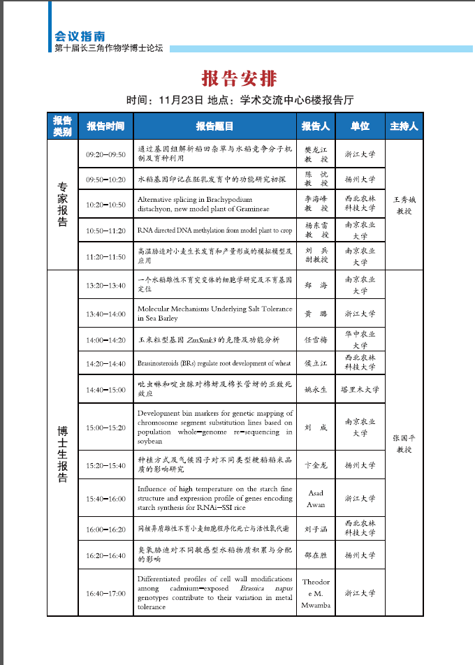 第十届长三角作物学博士论坛会议指南