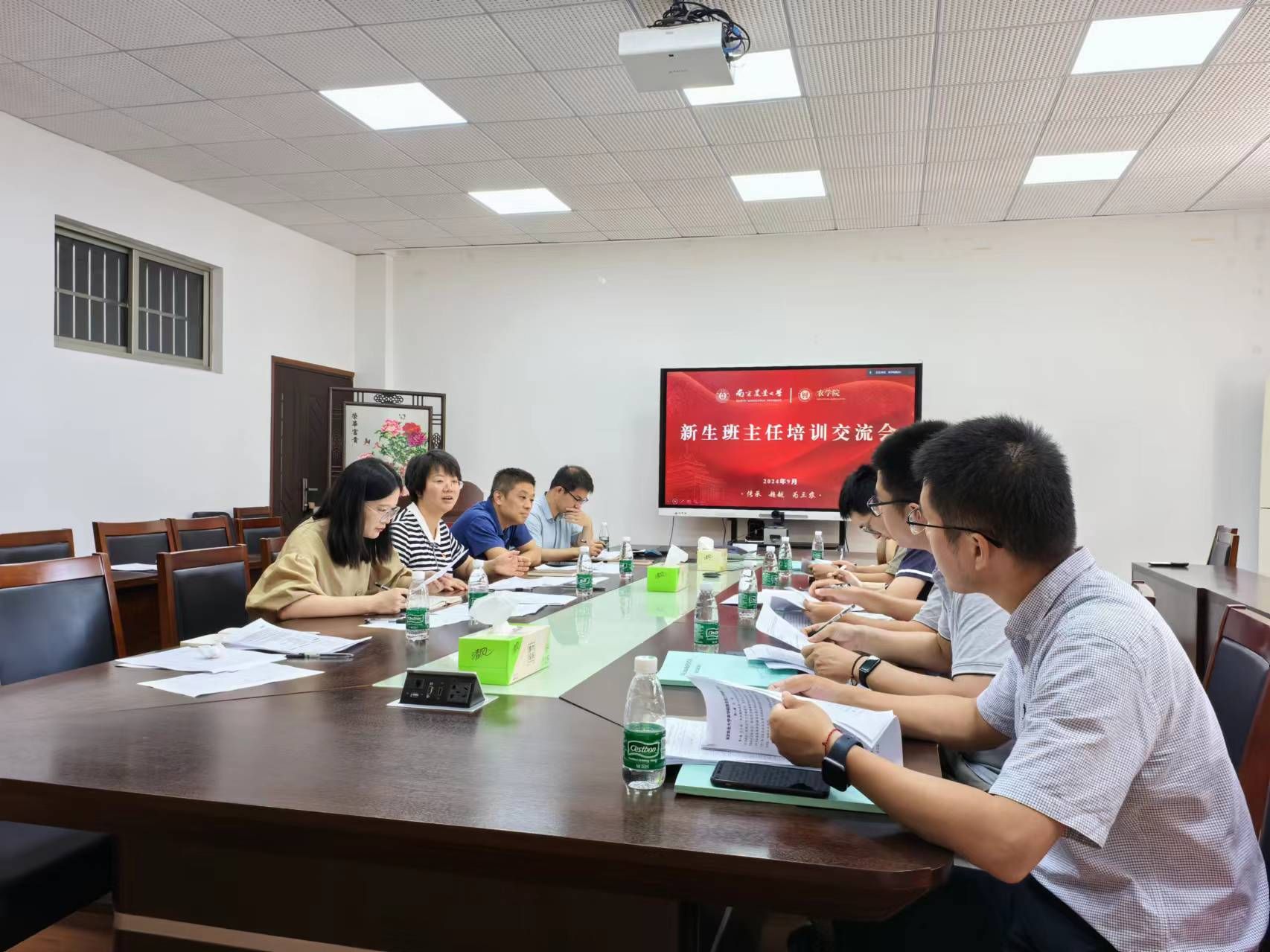 9月5日,DB彩票 2024级新生班主任工作培训交流会在卫岗校区生科楼B1013会议室顺利开展,DB彩票 党委副书记殷美、辅导员孙小雯、张华洲,全体新生班主任参加会议。