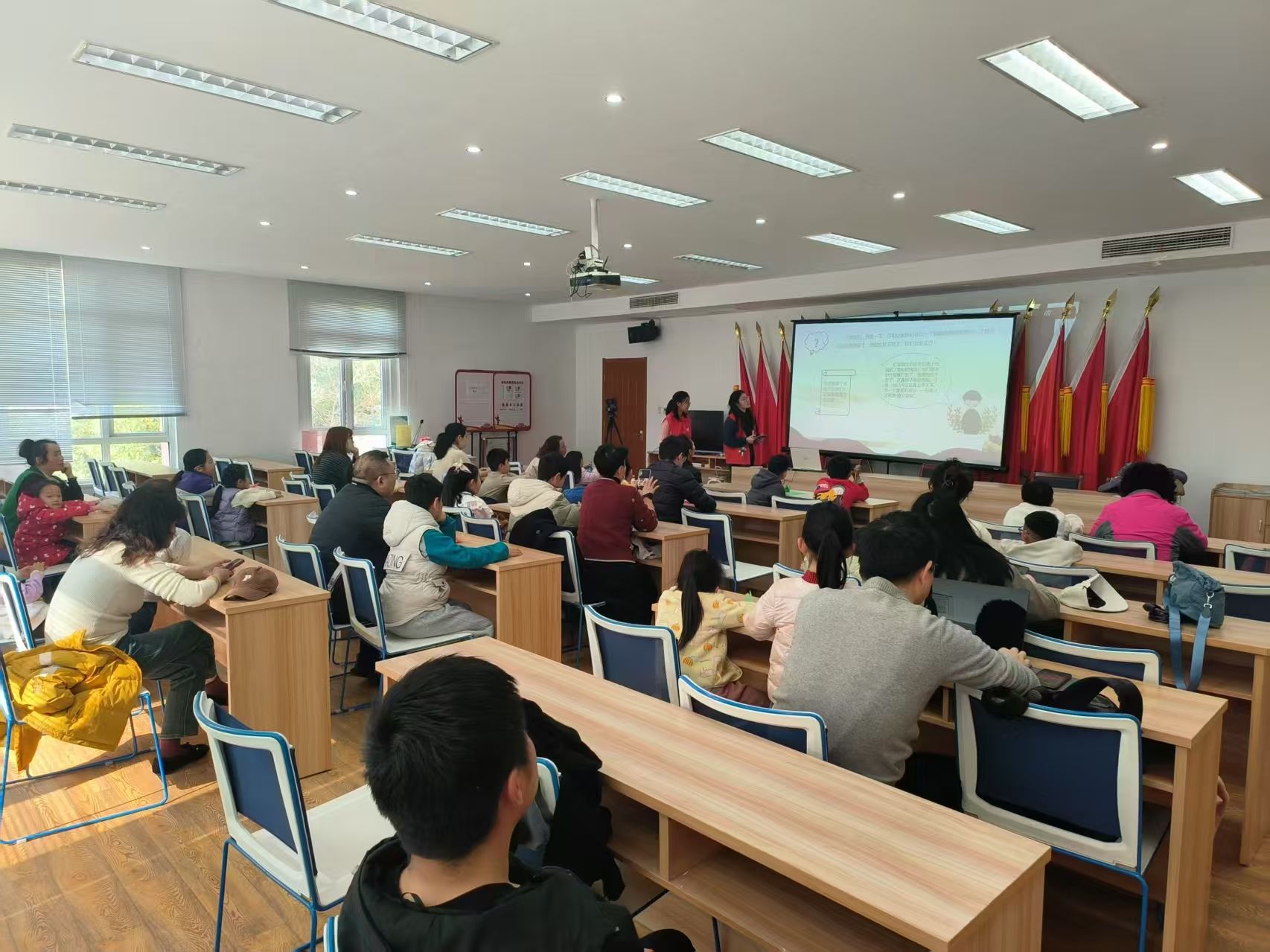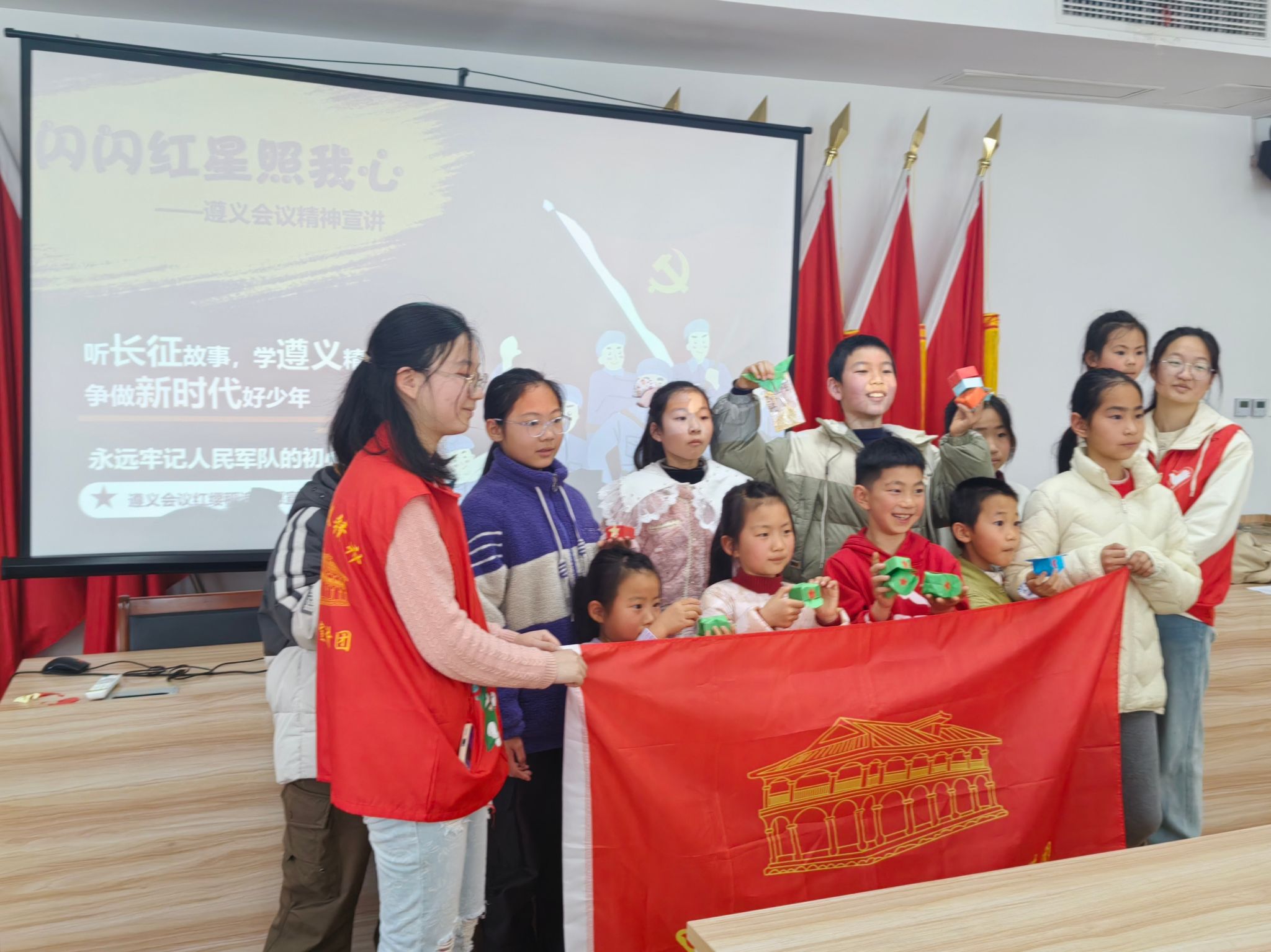 八里社区与DB彩票 宣讲活动中,主讲人以“闪闪红星照我心”为主题,向小朋友与家长们梳理了遵义会议的宏阔背景、跌宕进程及其划时代的重要价值。讲解期间,主讲人积极与台下小朋友互动,抛出引导性问题激发他们的思维火花。小朋友们踊跃作答,家长们同样热情高涨,积极为孩子们答疑解惑,现场气氛热络非凡。紧接着,绘画活动拉开帷幕,小朋友们拿起画笔,一边参照给出的样画,一边充分发挥想象力和创造力,在纸上描绘出他们心中的天安门和红军英雄的模样。这一活动以稚嫩的童心致敬红色经典,让天安门的壮丽与红军的英勇跃然纸上,使红色文化通过艺术的形式在孩子们心中悄然生根,于童真笔触间绽放出新时代光芒。