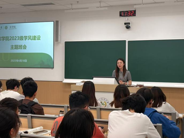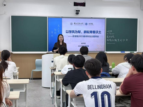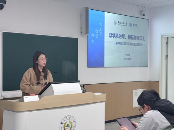 为营造积极向上的学习氛围,解答学生在学业、科研与升学方面的疑惑,引导学生正确认识强农兴农使命担当,近日,DB彩票 召开2023级本科生学风建设主题班会,班会以“以学风为犁,耕耘青春沃土”为主题,由年级辅导员史可欣老师组织开展。