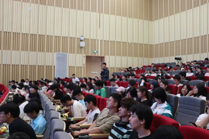 在互动环节中,同学们提出“老乡鸡在食品营养方面对未来有什么样的规划?”“农学专业学生毕业可以从事哪些职业?”“老乡鸡与农户的合作有哪些独特的模式?”等问题。束先生从理念融合、智慧养殖、烹饪方式、餐品特性等多个方面,一一回答了同学们的问题。
