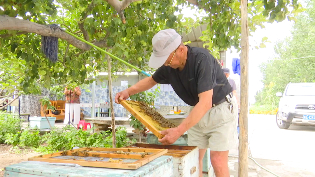 当走出棉花地后,村书记一脸骄傲地向实践团讲着乡村振兴相关政策实施以来,村庄发生了翻天覆地的变化。“之前这块地方全是土路,一下雨到处都是泥巴。你看现在这弄得多好,这人住着也舒服。”村书记指着干净整洁的户外健身器材说,眼里是藏不住的骄傲和喜悦。村书记还带领实践团参观了当地乡村振兴的模范村民王苪云和她的老伴。退休后闲不下来的老两口,在村“两委”的号召下,发展起了庭院经济。这些年来,他们在自家的小院种植了蔬菜,还发展了庭院养殖,增加了经济收入。“庭院里不仅种植了蔬菜,还养了40多箱蜜蜂,通过精心管理,收获了500多公斤蜂蜜,算下来有2万元的收入。” 村民王苪云高兴地说。