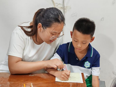 实践的最后一天,队员们应邀化身“小老师”前往乡村辅导小朋友功课。在陪伴孩子们读书、做题的过程中,大家不仅传递了知识,更在他们心中悄悄播下对传统文化好奇的种子。