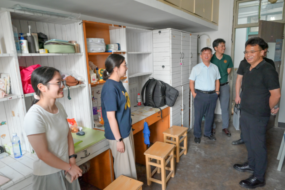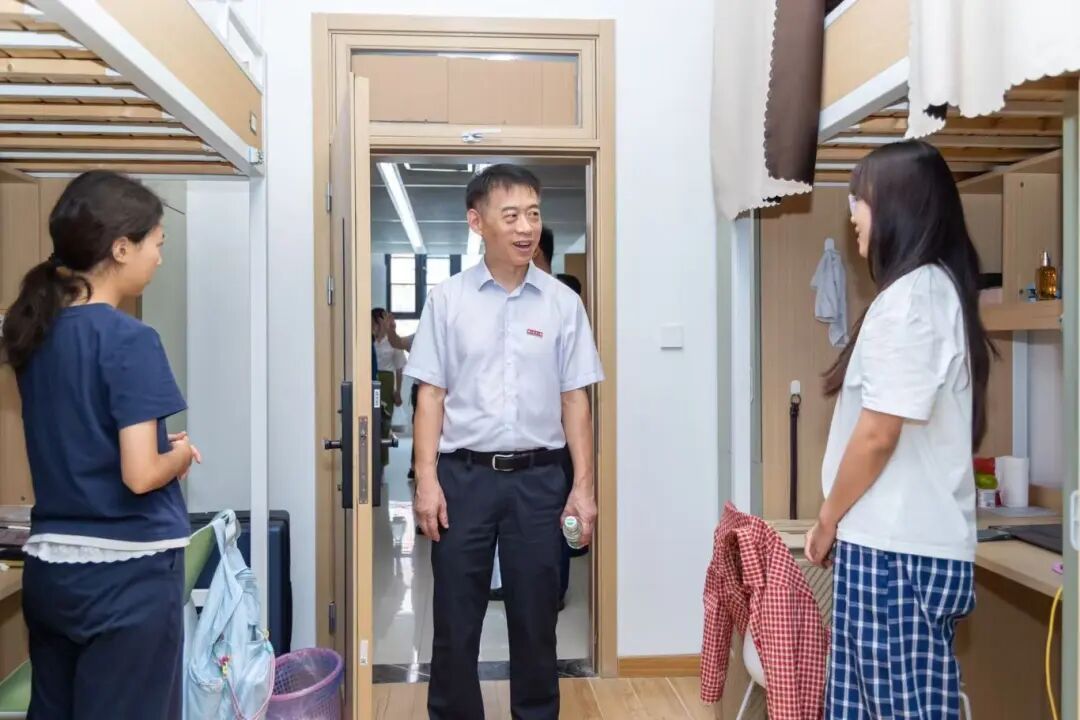 报到当天,DB彩票 党政领导班子共同前往2025级新生宿舍,了解学生适应情况,关心学生实际需求,帮助解决实际困难。