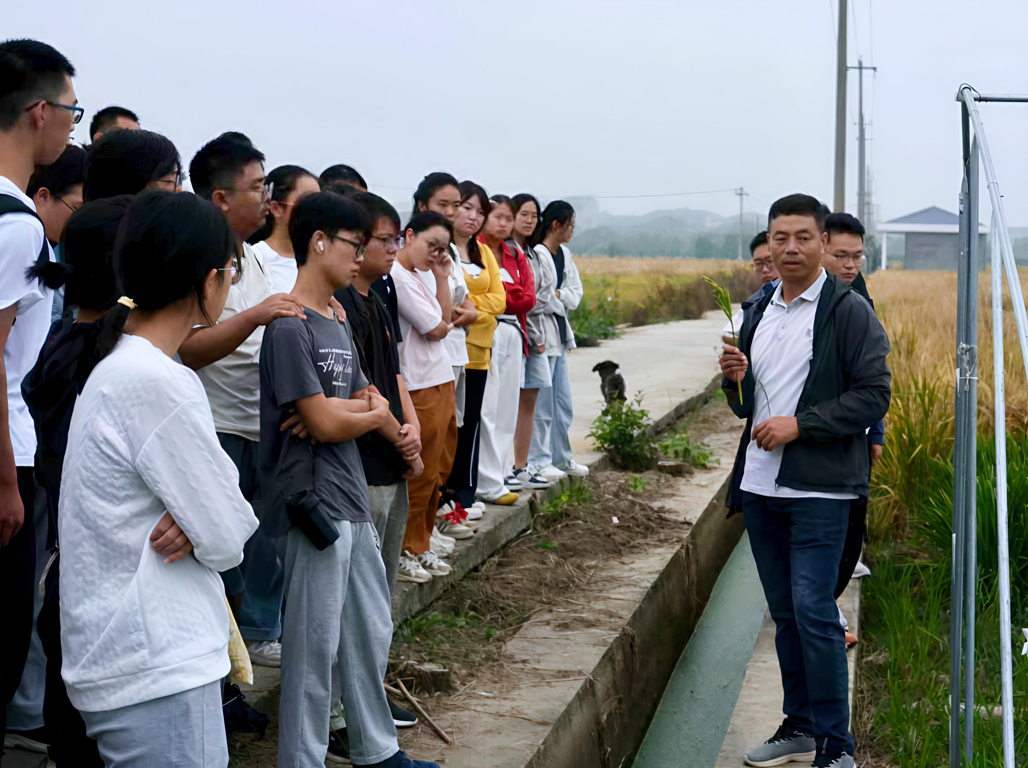 “作为一名生物育种专业的学生,土桥基地参观之旅令我收获颇丰。我不仅了解到三系杂交水稻与两系杂交水稻的培育流程,亦感佩于科研工作者的不畏艰难。”2025级生物育种实验班的金燹翀同学感慨万千,“最让我印象深刻的是,刘老师指着半开玩笑却语带期待地说:‘今年有虫害,所以拍照不是太好看,所以还得靠你们以后来研发抗虫的水稻。’那一刻,我好像明白了未来的努力方向。”