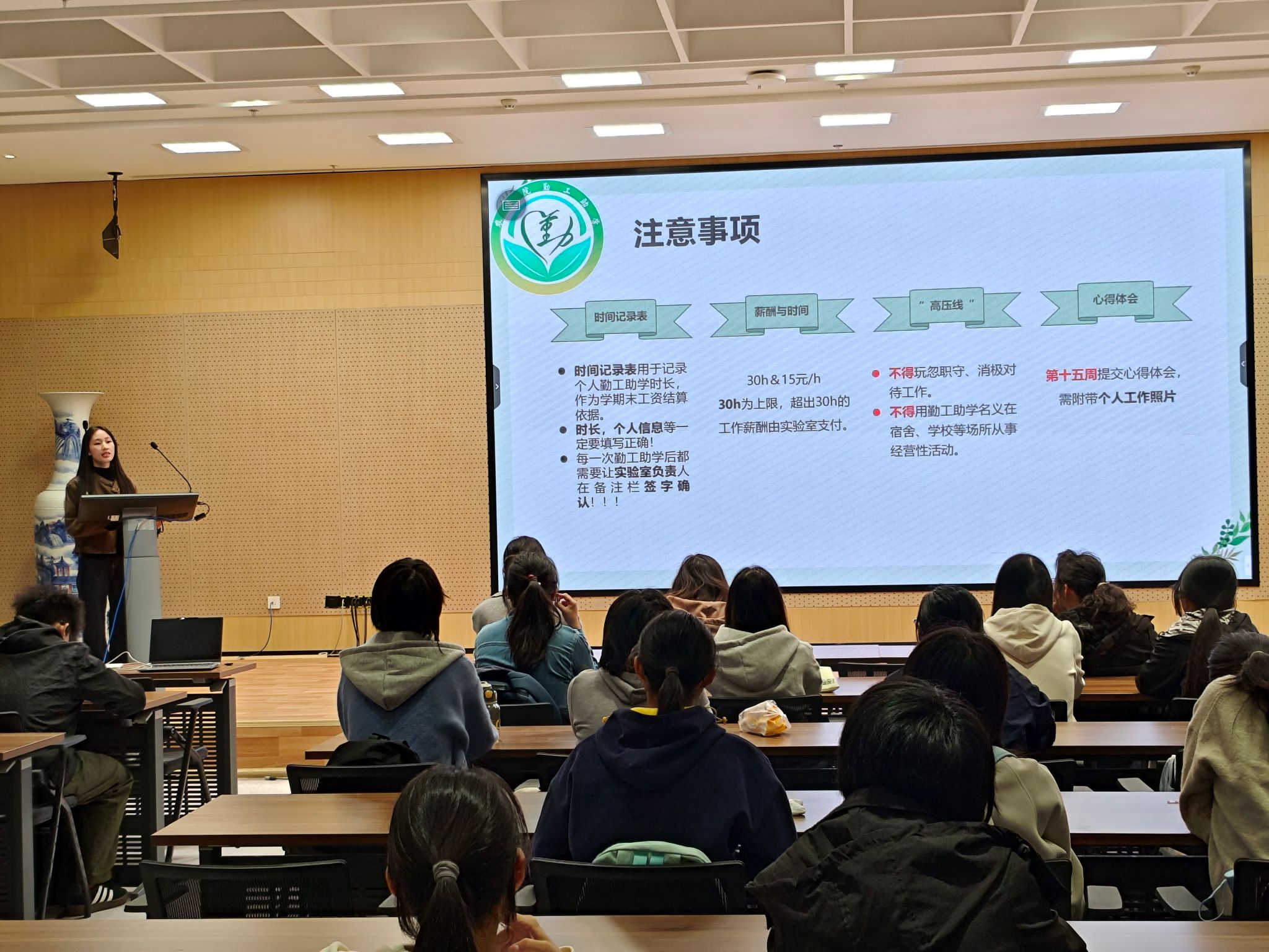 活动伊始,杨宸宇老师对勤工助学工作进行了说明,并向同学们提出了三项要求。第一,在勤工助学的过程中,同学们要高度重视安全问题,在使用危化品、刀具以及进行户外实践的时候务必小心;第二,勤工助学为同学们提供了进入实验室科研工作的机会,认真对待工作,在工作中锻炼开展试验和各项工作的基础能力;第三,在开展工作时,同学们要积极主动与老师、师兄师姐沟通交流,懂礼貌,有计划,锻炼沟通合作能力。